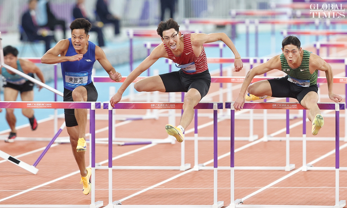 In the men’s 200m final on Wednesday, rising post-2005 sprinter Shi Junhao claimed the gold medal with a time of 20.30 seconds, while in the women’s 200m final, Zhejiang’s 16-year-old Chen Yujie took the title. Having already won the 100m earlier, she became the first female double champion in athletics at this year’s National Games. In the men’s 110m hurdles final, Xu Zhuoyi secured the victory with a time of 13.12 seconds, adding another memorable highlight to the track events. Photos: Cui Meng/GT