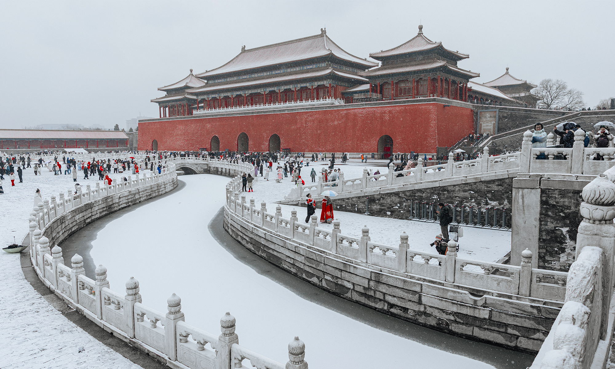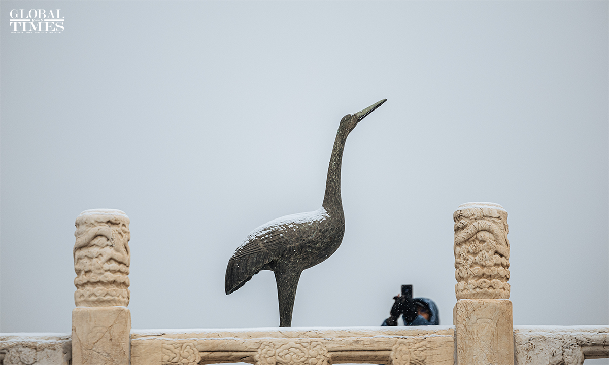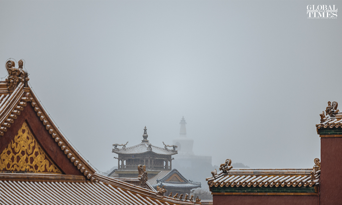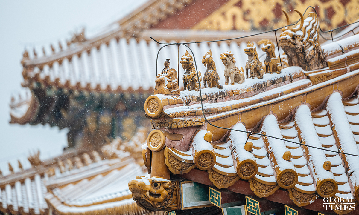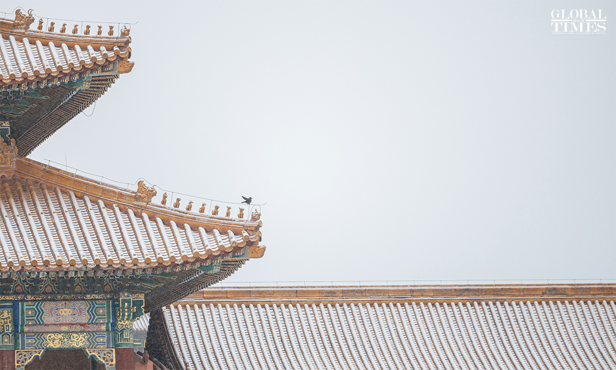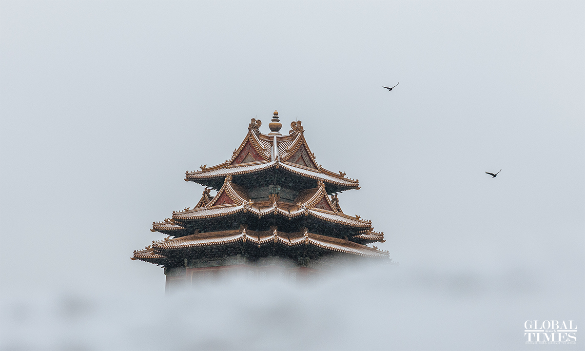 On December 12, Beijing saw its first snowfall of winter 2025. At the Palace Museum, visitors dressed in traditional costume strolled and took photos in front of the snow-covered ancient buildings. Photos: Li Hao/GT