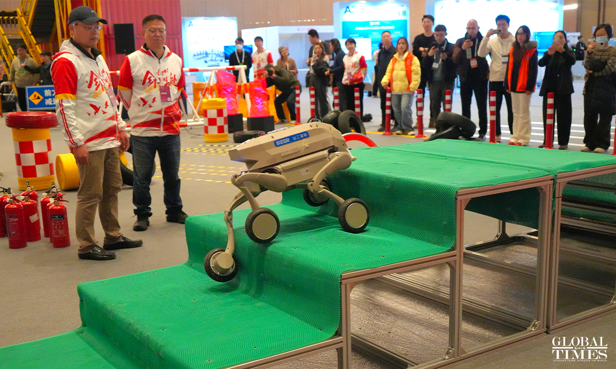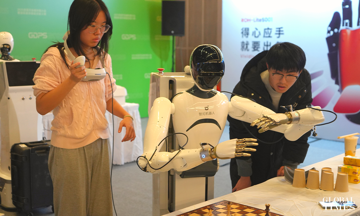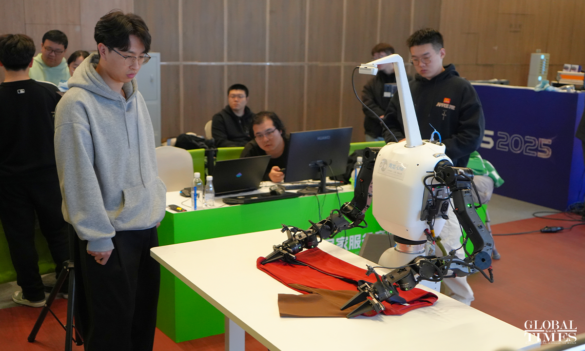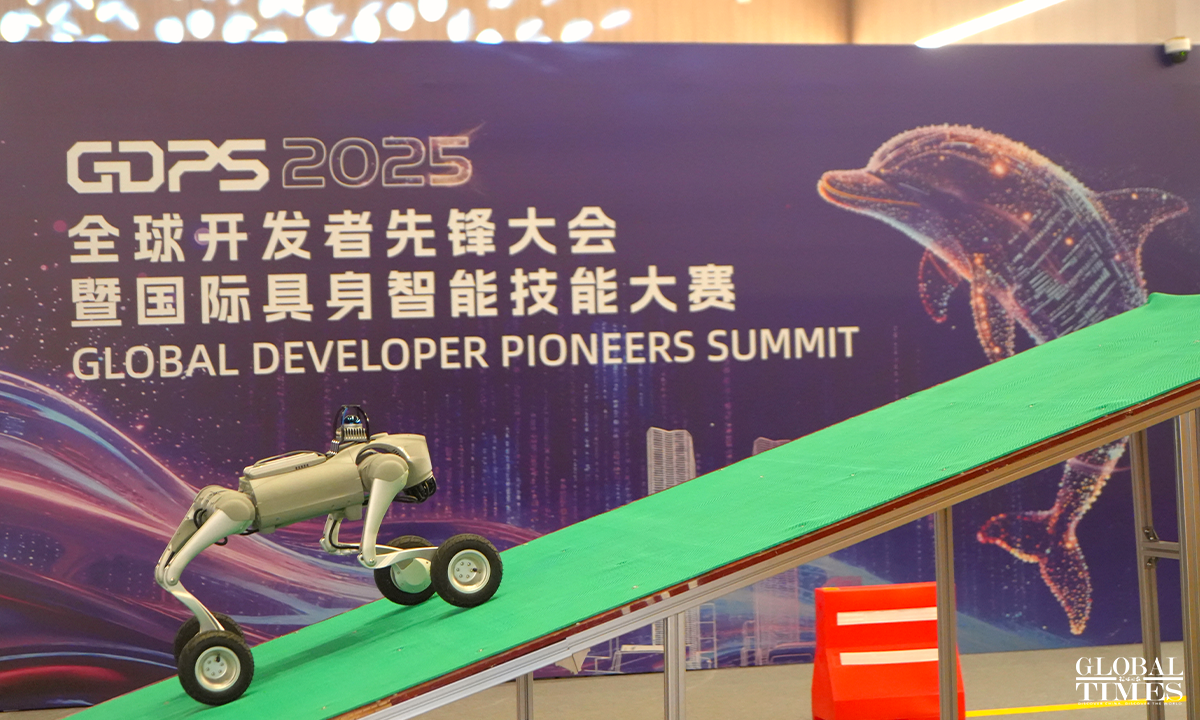 The Global Developer Pioneers Summit is being held at the Zhangjiang Science Hall in Shanghai from December 12 to 14, 2025. For the first time, the event introduces the WorldSkills "gold standard" into the field of robotics, which comprises six major tracks and 17 competition items, ranging from industrial assembly and handling; social services (such as restaurant service and flower arranging competitions); home services (such as folding clothes); extreme rescue (such as traversing fire and ruins) to medical care and health and dexterity. Photos: Lu Ting/GT