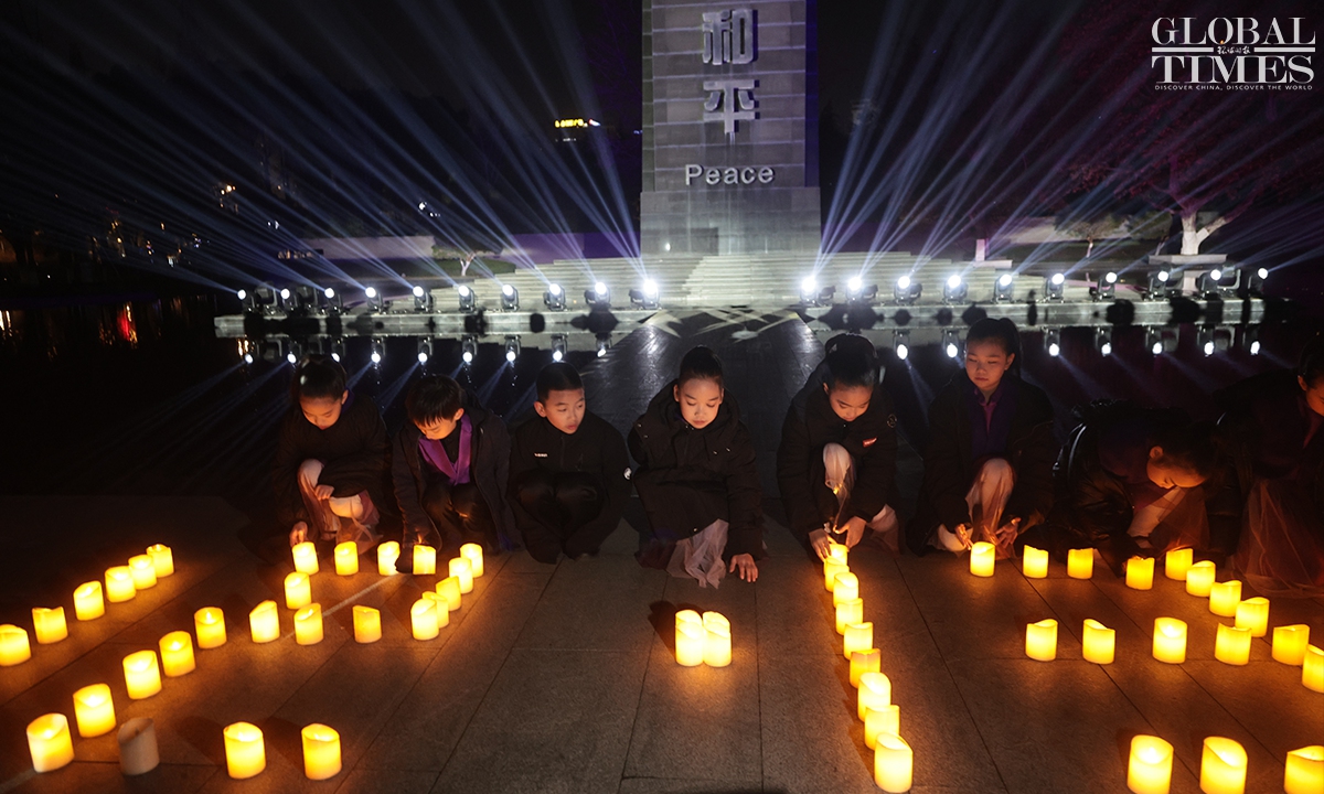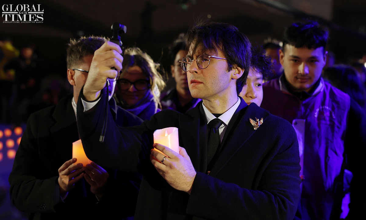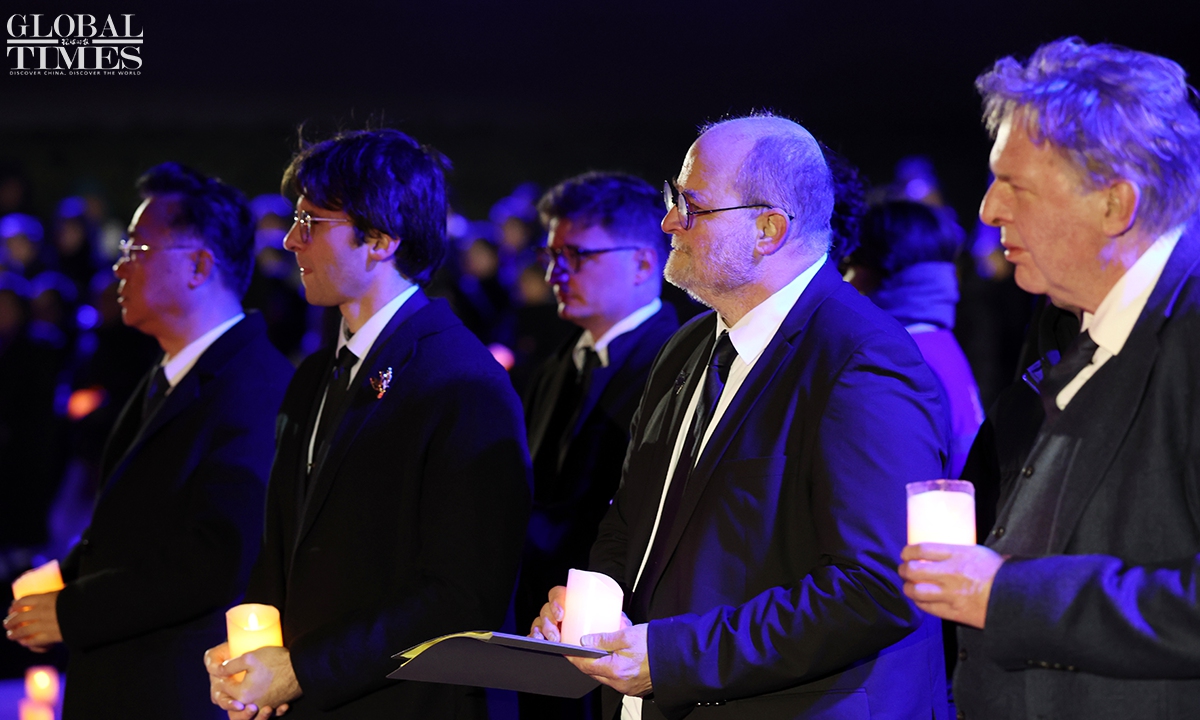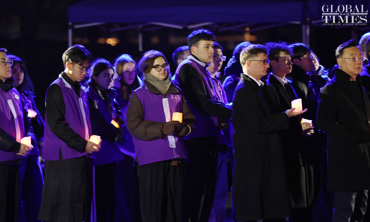 On the evening of December 13, the "Candle Vigil Ceremony: The International Peace Assembly" was held at the Memorial Hall of the Victims in the Nanjing Massacre by Japanese Invaders. Descendants of Nanjing Massacre survivors, descendants of international friends, Zijin Grass volunteers, and youth representatives gathered in Nanjing to mourn the victims of the massacre and offer prayers for lasting world peace. Photos: Cui Meng/GT