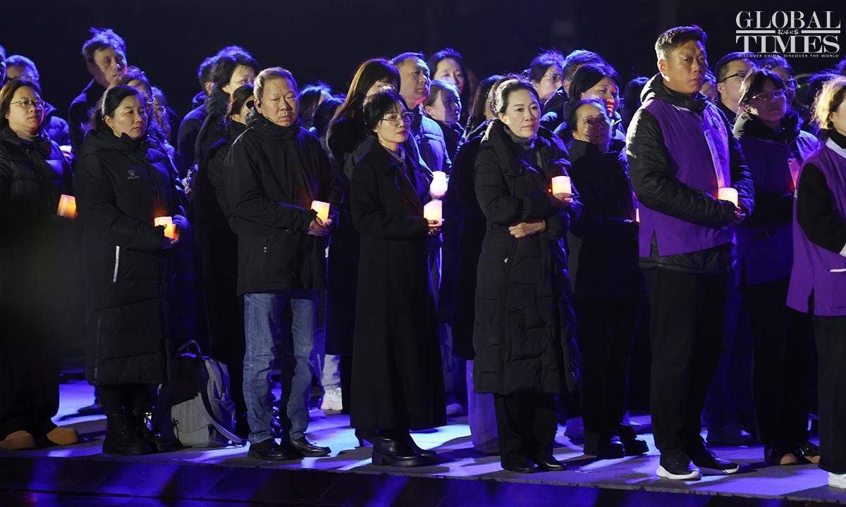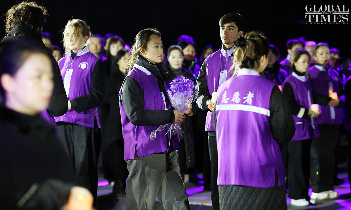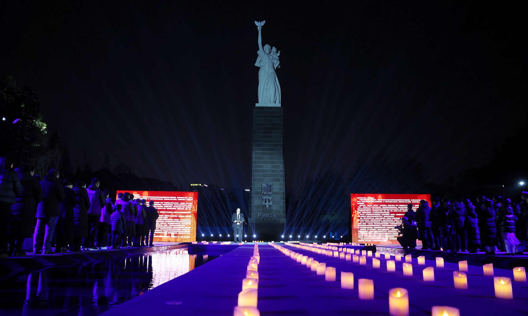 On the evening of December 13, the "Candle Vigil Ceremony: The International Peace Assembly" was held at the Memorial Hall of the Victims in the Nanjing Massacre by Japanese Invaders. Descendants of Nanjing Massacre survivors, descendants of international friends, Zijin Grass volunteers, and youth representatives gathered in Nanjing to mourn the victims of the massacre and offer prayers for lasting world peace. Photos: Cui Meng/GT