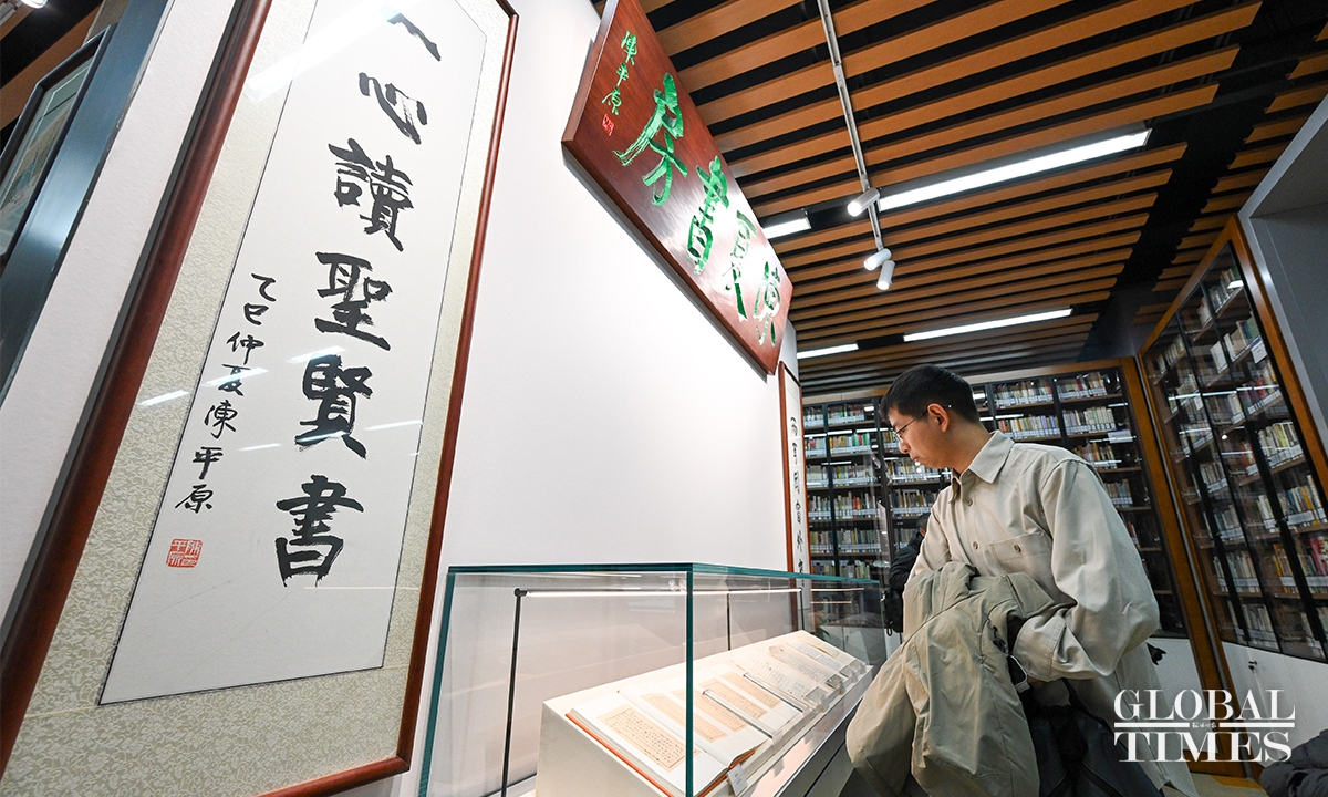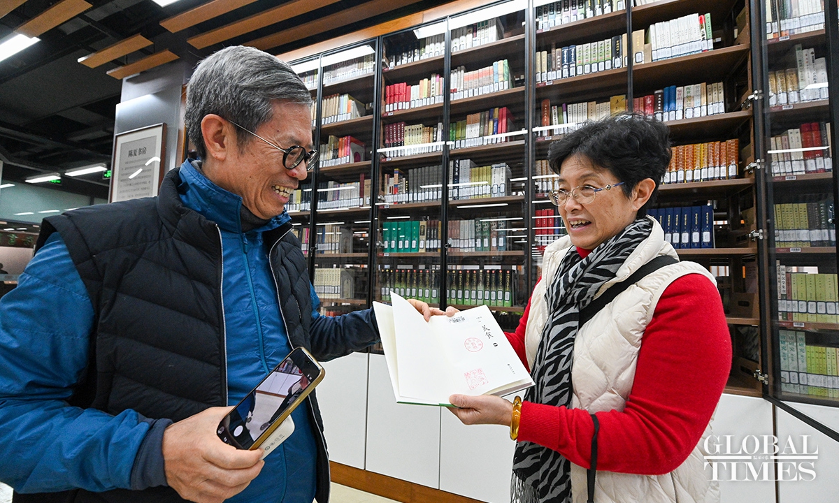 On December 22, the "Chen-Xia Study," established by the Capital Library of China to house books donated by Chen Pingyuan and Xia Xiaohong, professors of Peking University's Department of Chinese Language and Literature, officially opened to the public. The initial donation includes 13,000 volumes, primarily comprising personal works, edited collections, research materials, and signed books gifted by academic peers. During the event, Chen and Xia formally signed a donation agreement with the library, and the couple unveiled the "Chen-Xia Study." Photos: Chen Tao/GT