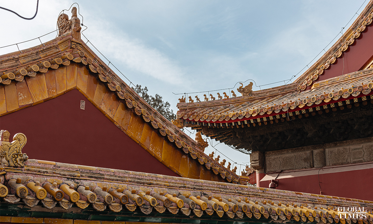 The Hall of Mental Cultivation was built in 1537 during Ming Dynasty (1368-1644) and rebuilt during the reign of the Qing Dynasty’s Yongzheng Emperor (1722-1735). The Yongzheng Emperor had the entire area repurposed from the former imperial workshop to the imperial office where he lived and handled state affairs. Photos: Li Hao/GT
