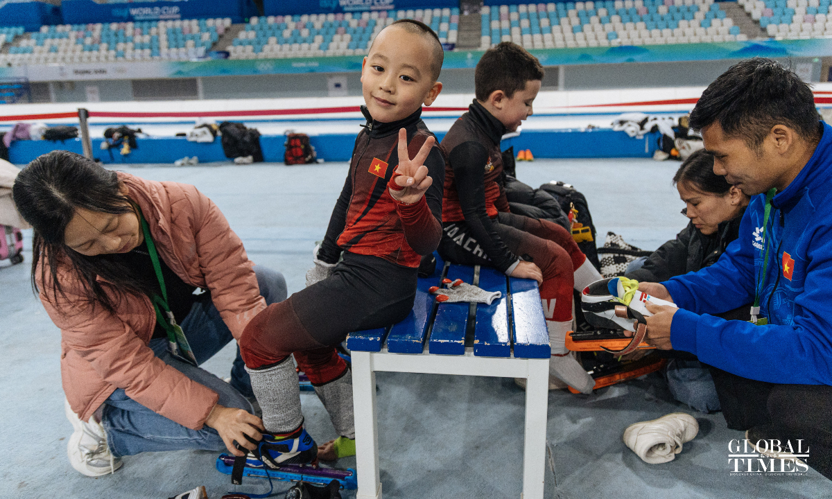 The third stop of the 2025 Beijing TOP Short Track Speed Skating International Open kicked off at the iconic “Ice Ribbon” on December 27. Teams from various Beijing sports schools and clubs, as well as four international teams from Australia, Mongolia, Vietnam, and Thailand, will compete in multiple events. (Photos: Li Hao/GT)