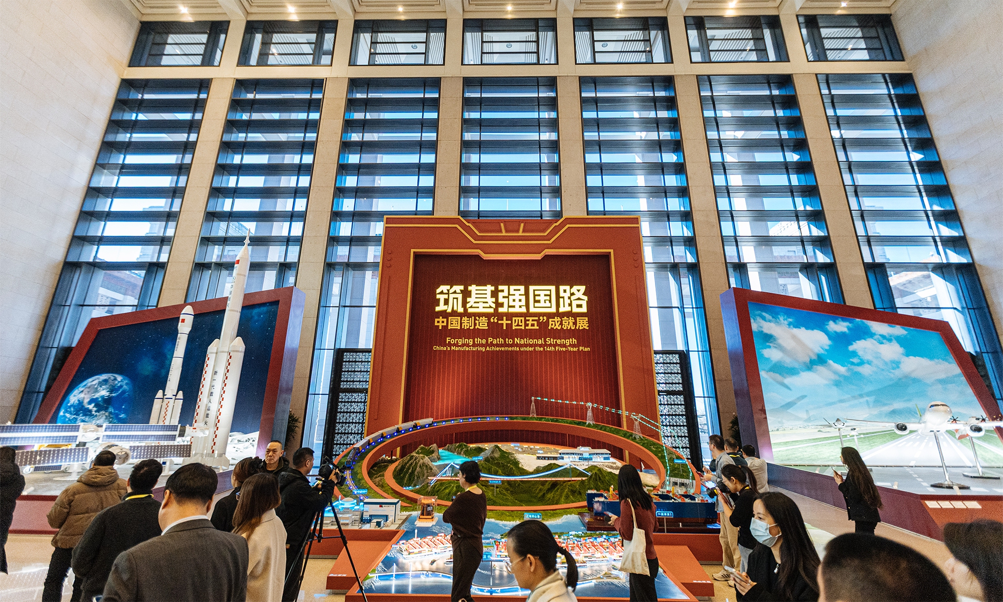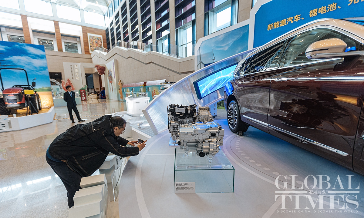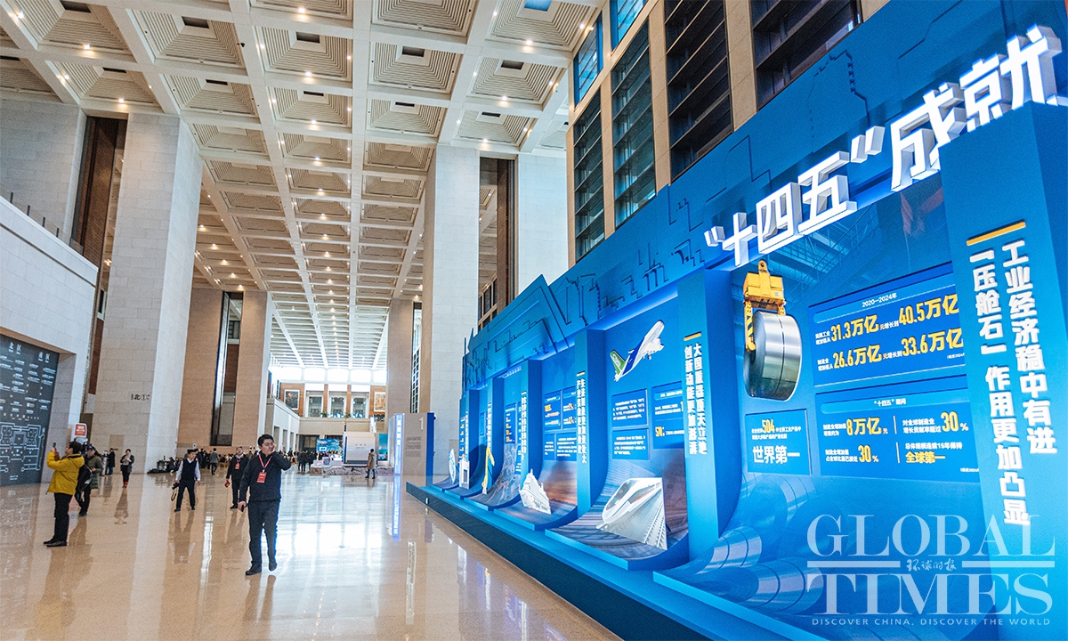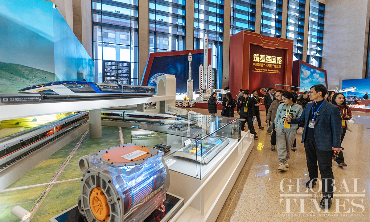 The "Forging the Path to National Strength: China's Manufacturing Achievements under the 14th Five-Year Plan" exhibition opened on December 29 at the National Museum of China. The exhibition presents a panoramic view of the vigorous development of China's manufacturing sector during the 14th Five-Year Plan period (2021-25) through six sections—high-end manufacturing, industrial foundations, smart manufacturing, green manufacturing, integrated development, and better living—featuring over 300 exhibits/sets. It offers the public an intuitive display of both the core strengths and the people-centric warmth of Chinese manufacturing. (Photo: Li Hao/GT)