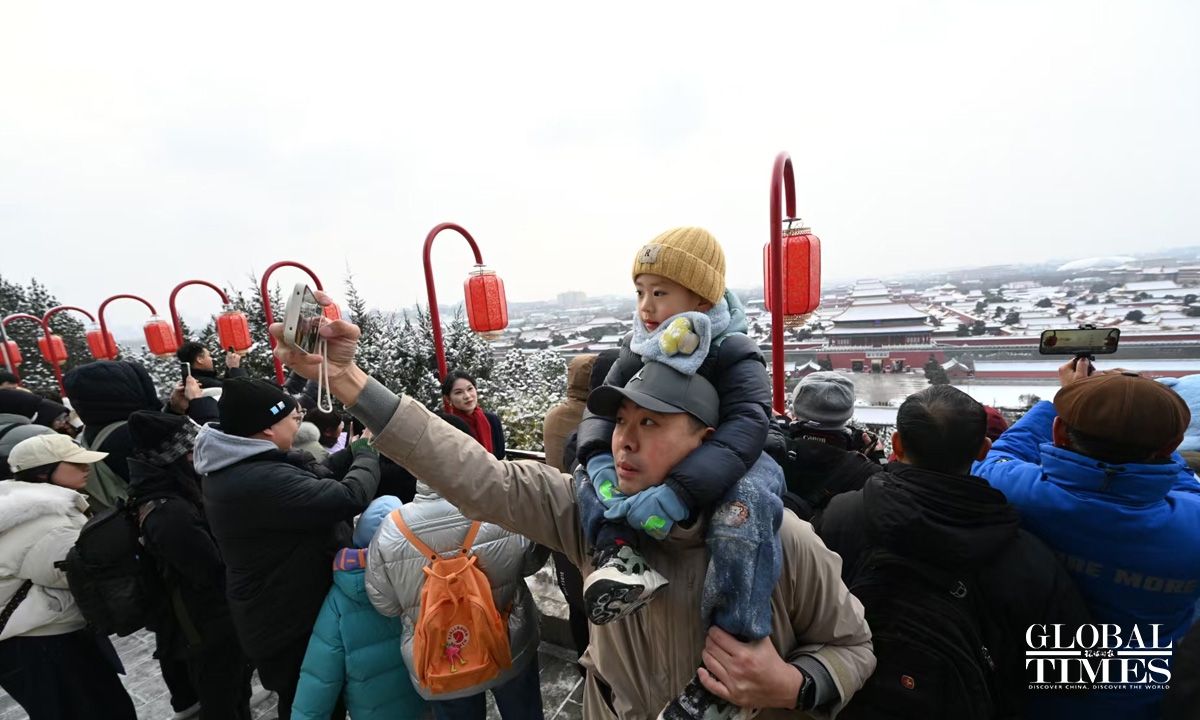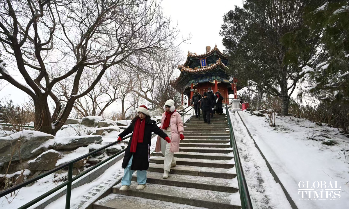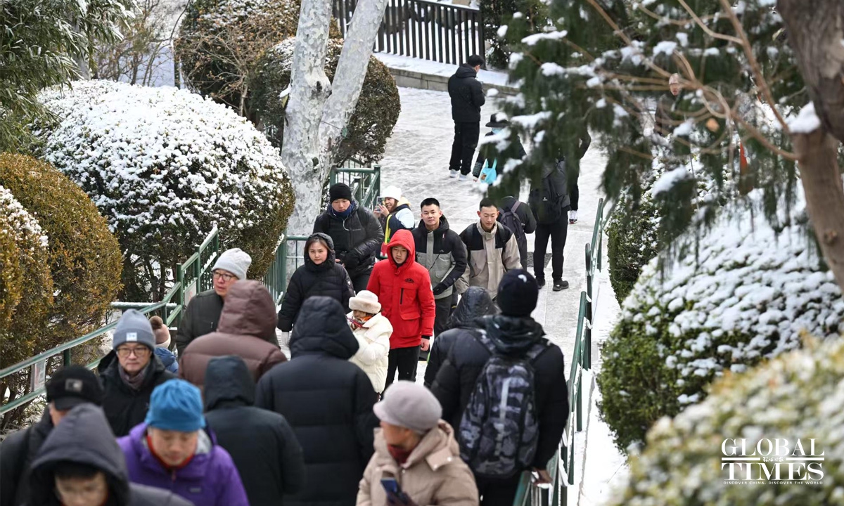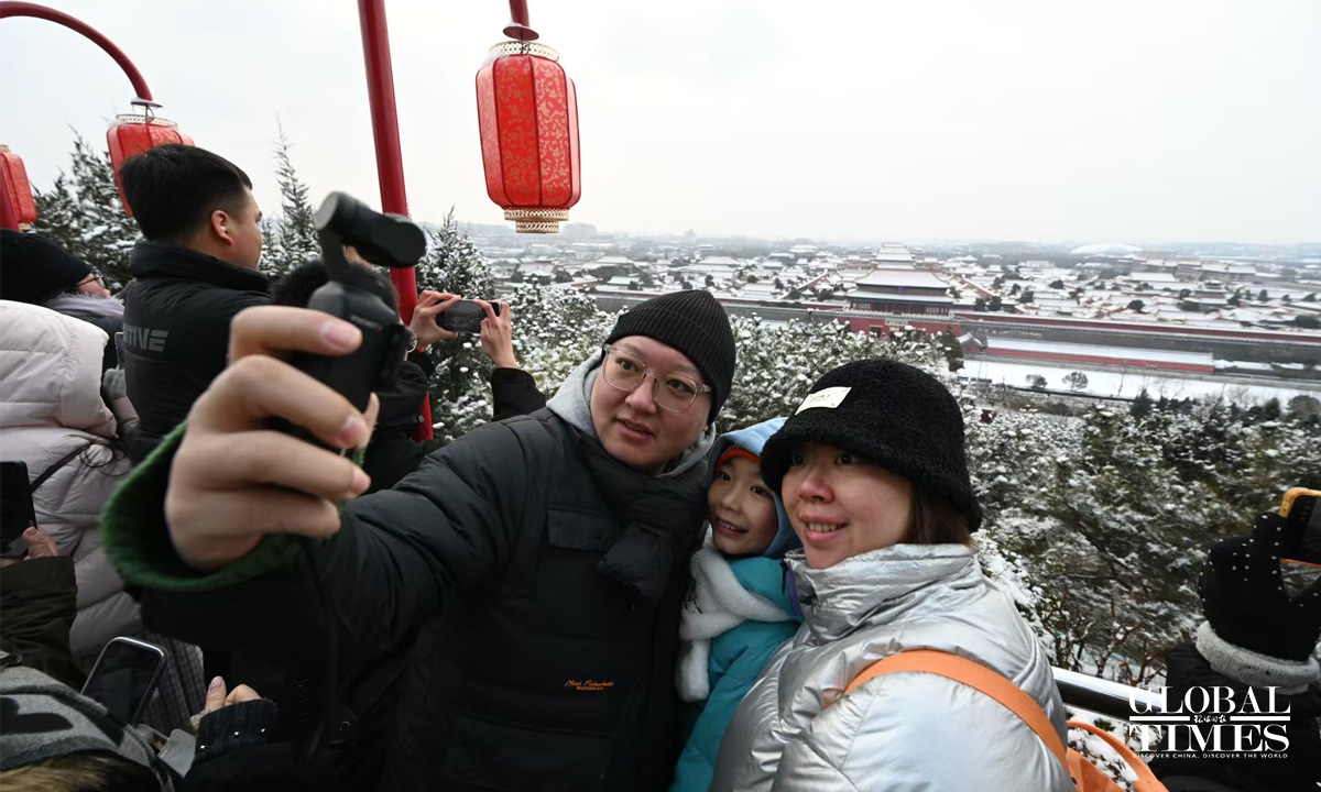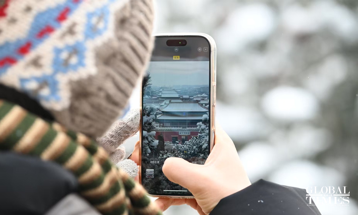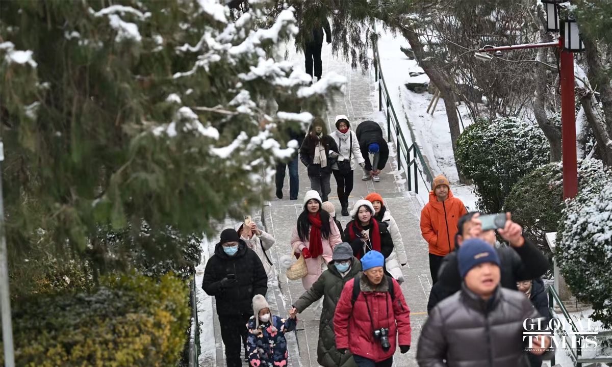 On January 17-18, coinciding with the onset of "Si Jiu period" — the fourth nine-day period after the day of the Winter Solstice, traditionally considered the coldest stretch of winter — Beijing welcomed its first snowfall of 2026. Parks across the city center, including the Forbidden City, Jingshan, and Beihai, were draped in a blanket of white. Undeterred by the chill, many visitors braved the cold to stroll through the snow-covered scenery, capturing memorable moments with their cameras. Photos: Chen Tao/GT