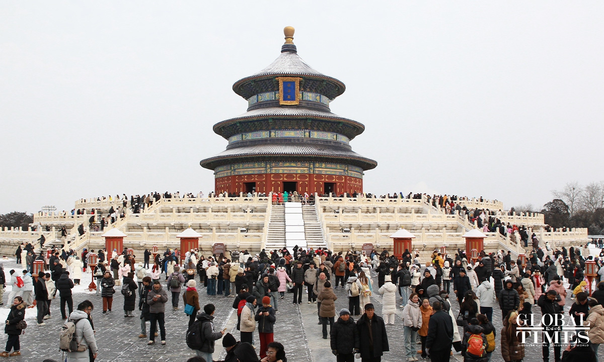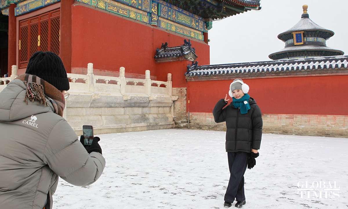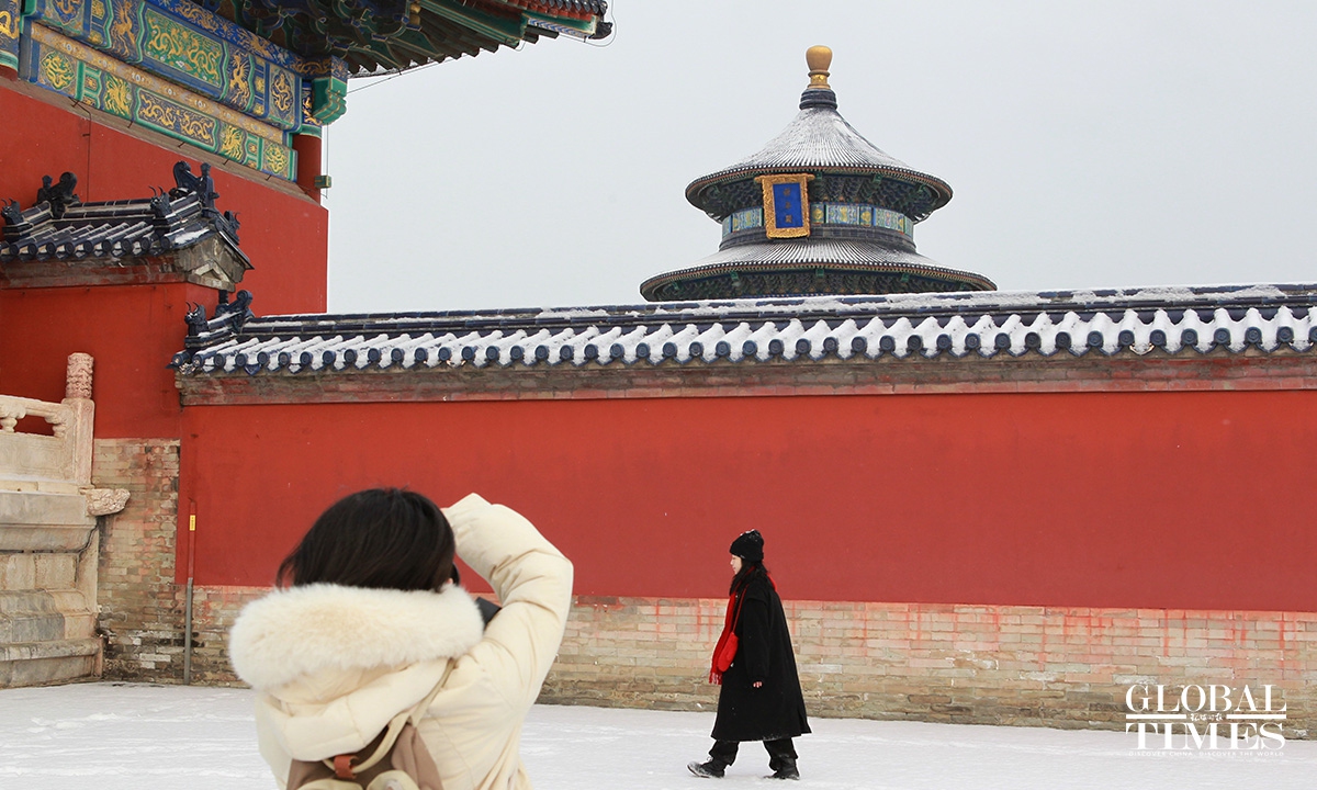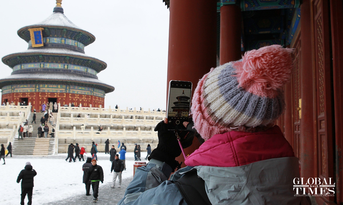 Beijing was greeted by its first snowfall of 2026 on January 17-18. Residents and visitors alike flocked to the iconic Tiantan (Temple of Heaven) Park to capture and commemorate the picturesque winter scene. Photos: Cui Meng/GT
