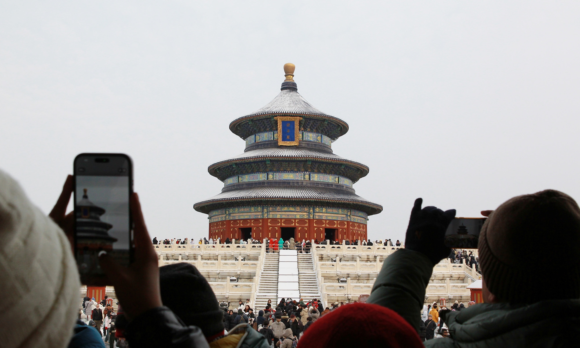 Beijing welcomes first snow of 2026, drawing crowds to Temple of Heaven Park