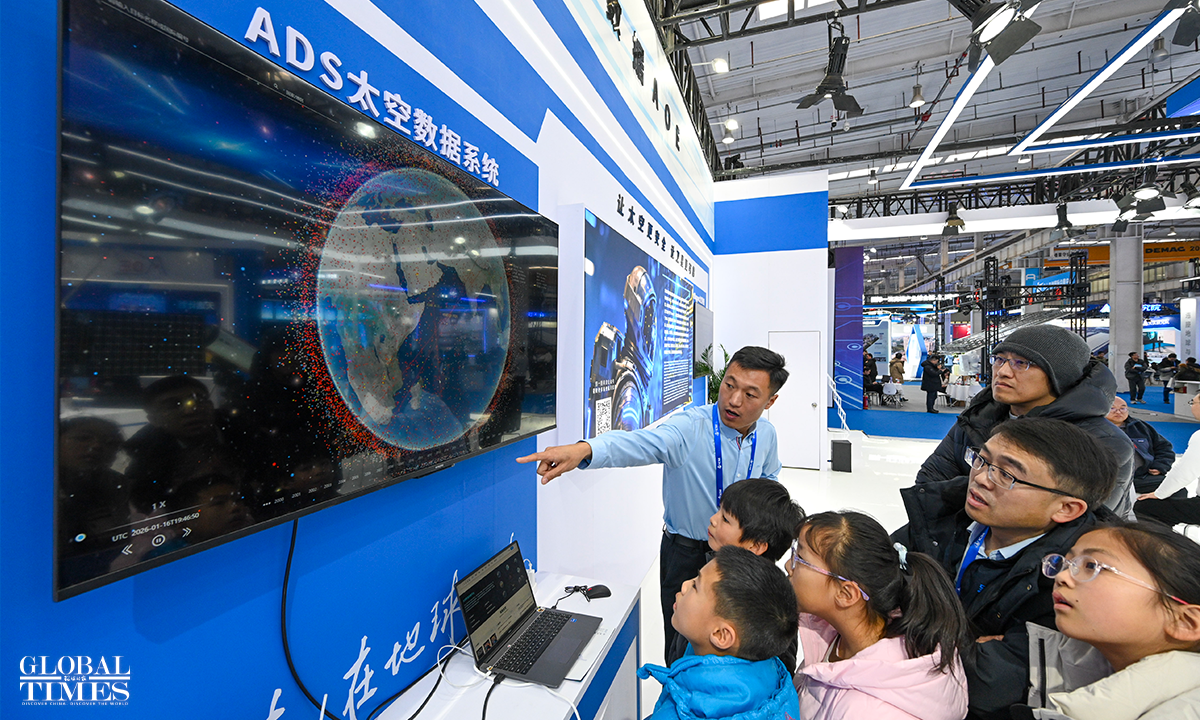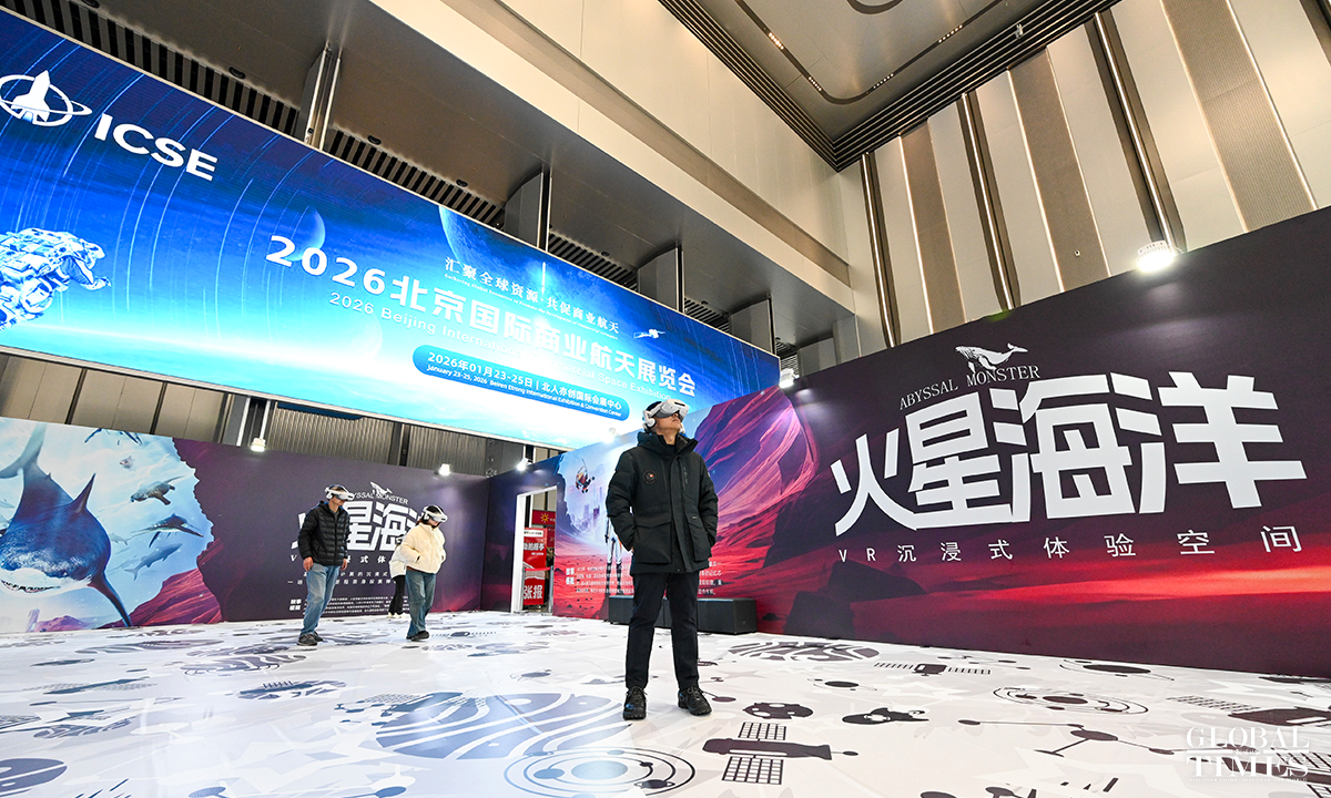On January 23, the 2026 Beijing International Commercial Space Exhibition kicked off at the Beiren Etrong International Exhibition & Convention Center in Beijing. This year's expo spans 20,000 square meters and features more than 300 commercial space companies from China and abroad, covering key areas such as rockets, satellites, and application services, and presenting in a systematic way the latest achievements in China's commercial space sector. Photos: Chen Tao/GT
