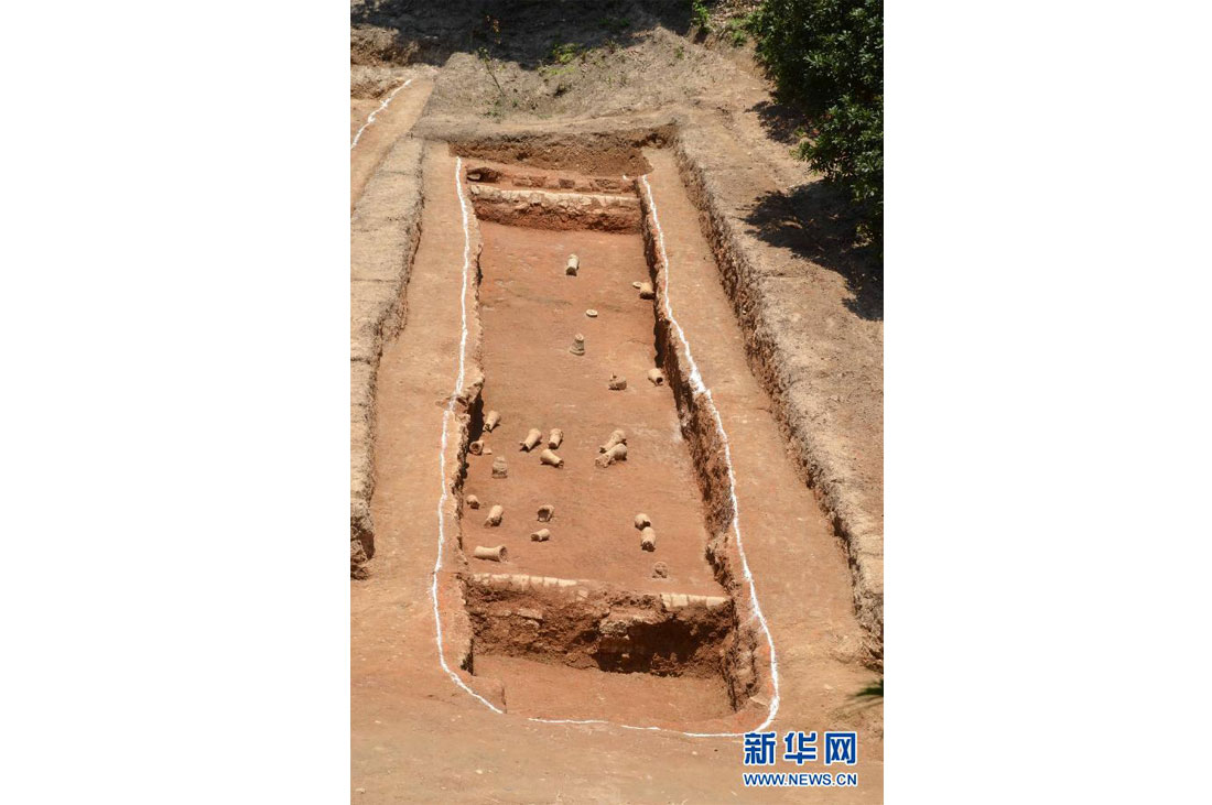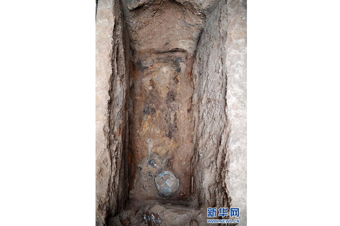 Bones and objects in an ancient tomb unearthed at the Dabona Ancient Tombs Site in Xiangyun county of Yunnan Province. The discovery of some 290 artifacts extracted from a total 25 tombs provides valuable insight into the cultures living in Yunnan Province between the Warring States period (475BC-221BC) and Han Dynasty (206BC-AD220). Photo: Xinhua