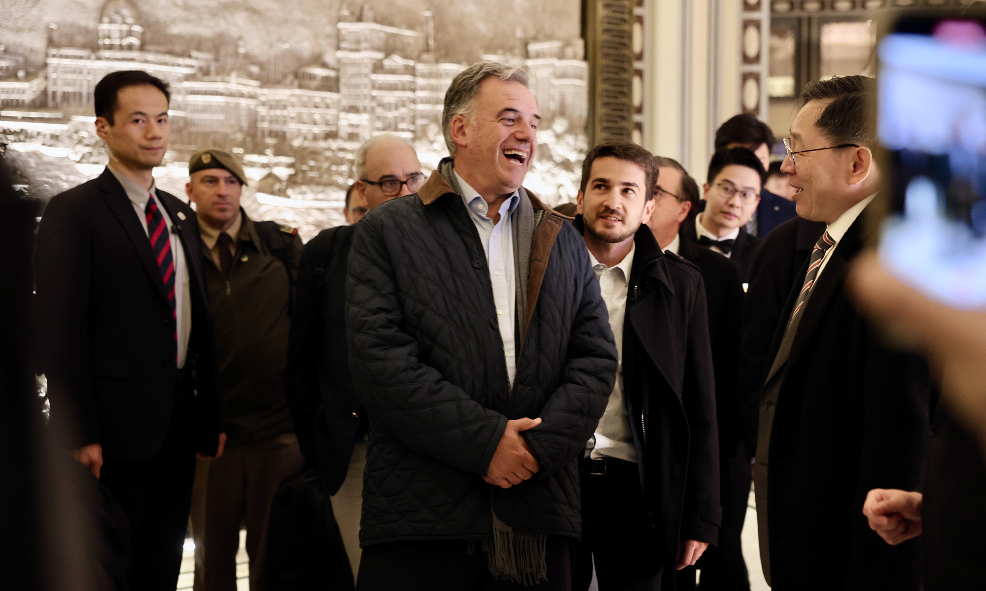 The Old Jazz Band at Shanghai Peace Hotel performed "La Cumparsita" to greet Uruguayan President Yamandu Orsi on Wednesday night in Shanghai Peace Hotel. "La Cumparsita" is one of the world's most famous tangos. It was written in 1917 by a Uruguayan composer.