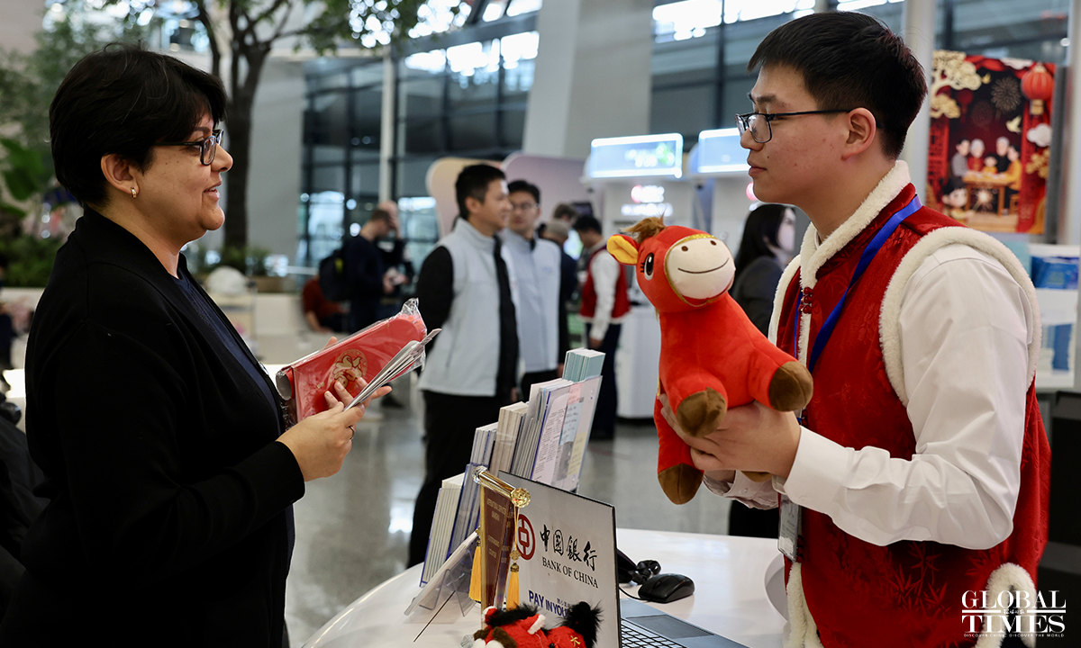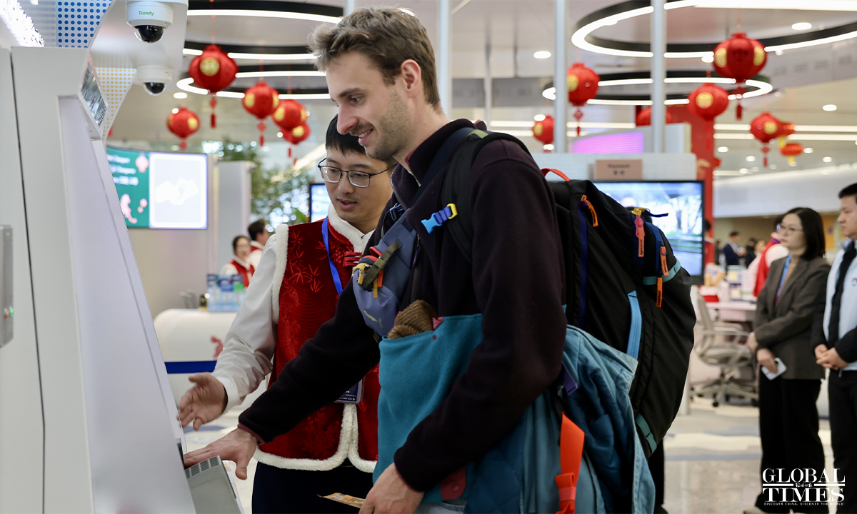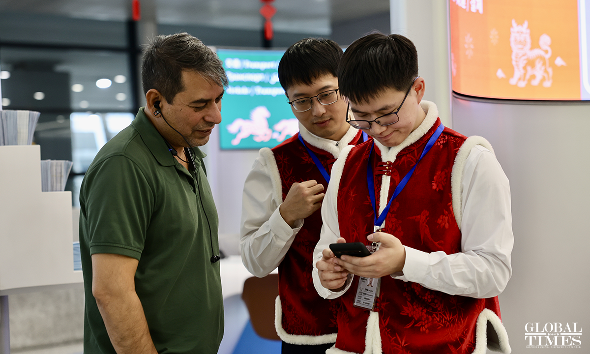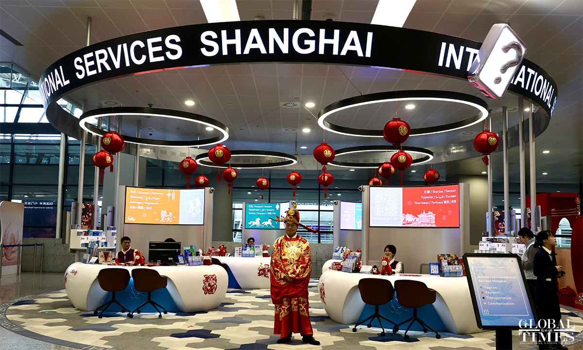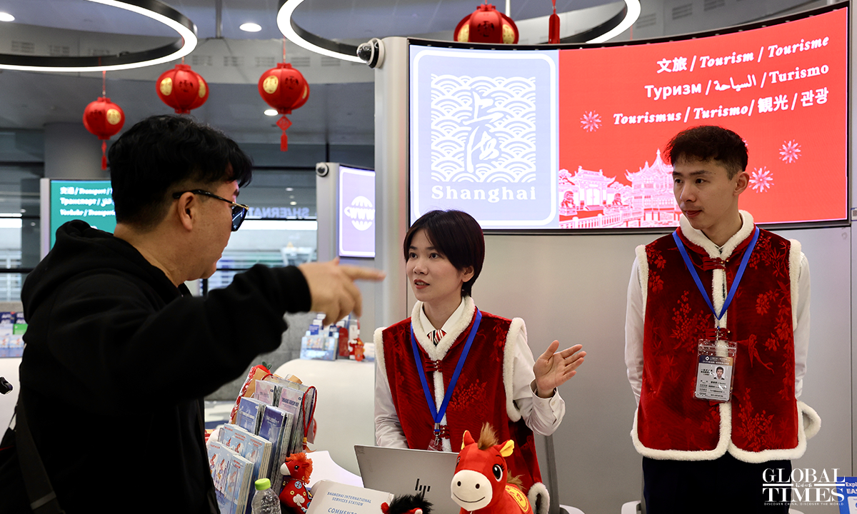 A Chinese New Year flash event was held at the International Services Shanghai, the one-stop service center for foreigners at Terminal 2 of Shanghai Pudong International Airport on February 5, 2026. Foreign friends on site participated in interactive experiences such as learning New Year greetings in Shanghai dialect, writing the Chinese character "Fu" (meaning "good fortune"), and trying traditional rubbing printing. Through these engaging activities, they immersed themselves in the customs and culture of the Chinese New Year, joyfully welcoming the upcoming Spring Festival. Photos: Chen Xia/GT