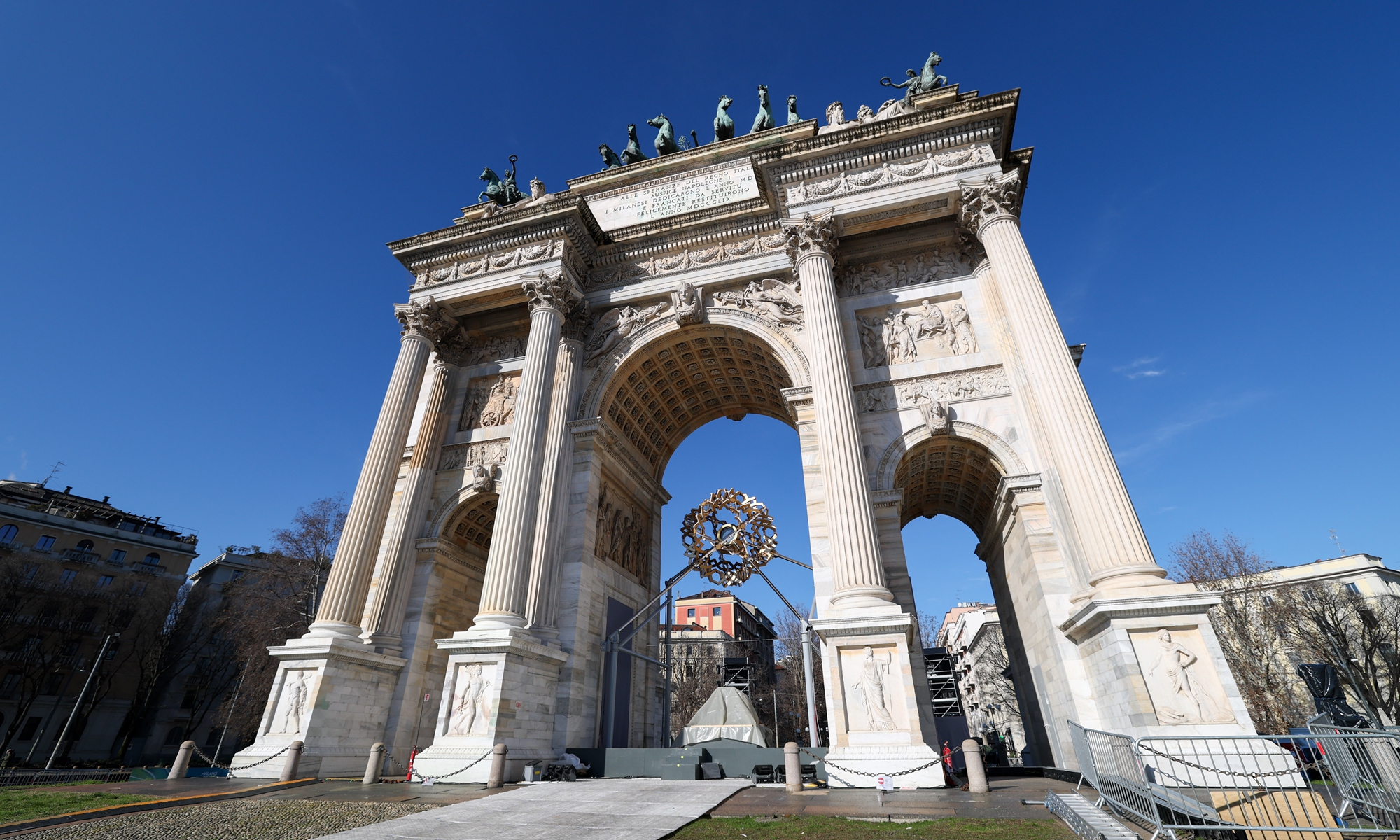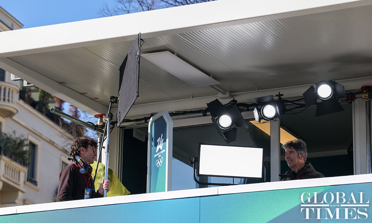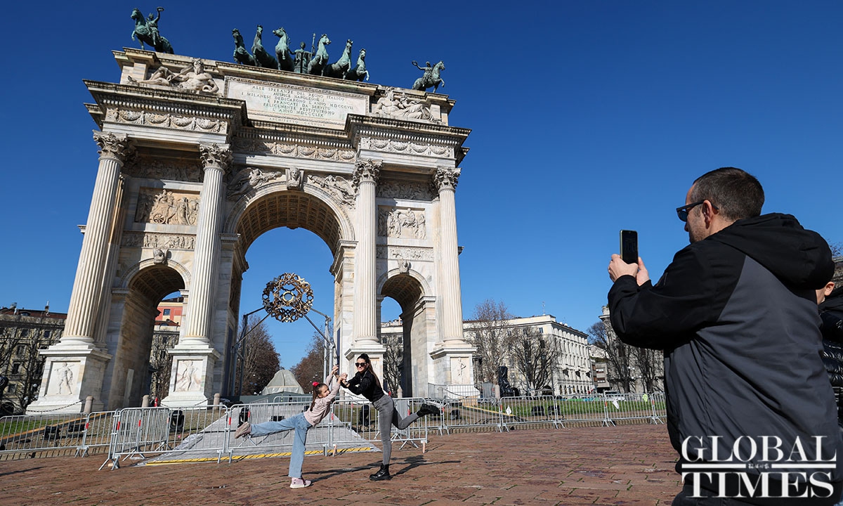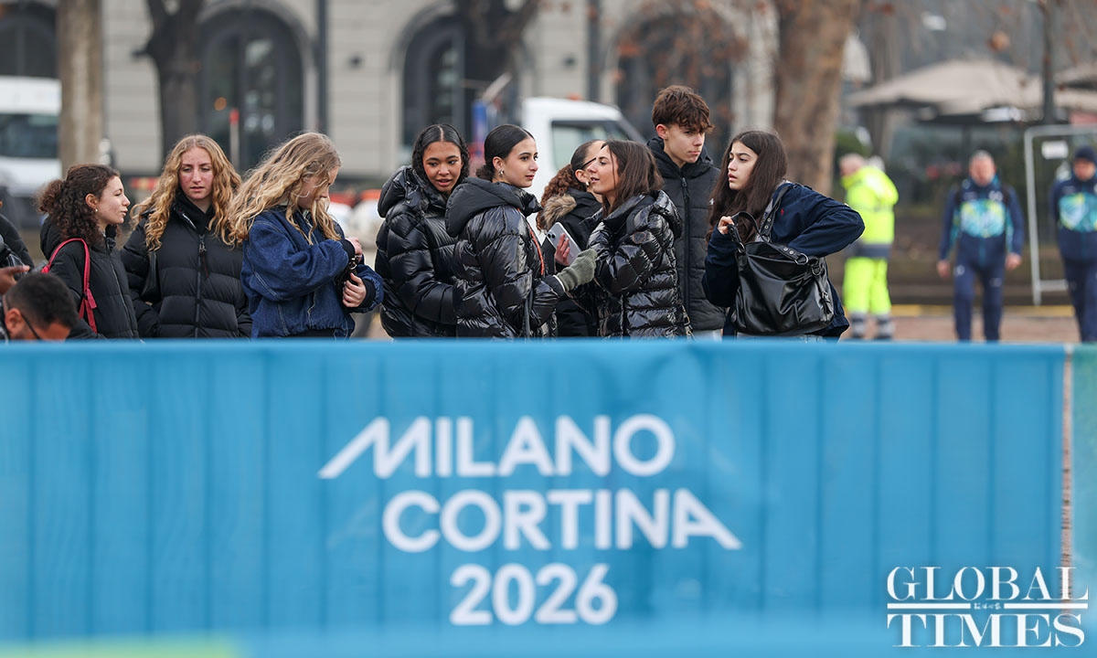 The installation around the cauldron for the Milano-Cortina 2026 Winter Olympics at Milan’s Arco della Pace has been largely completed and is now awaiting lighting at the Opening Ceremony. Photos: Chen Tao/GT