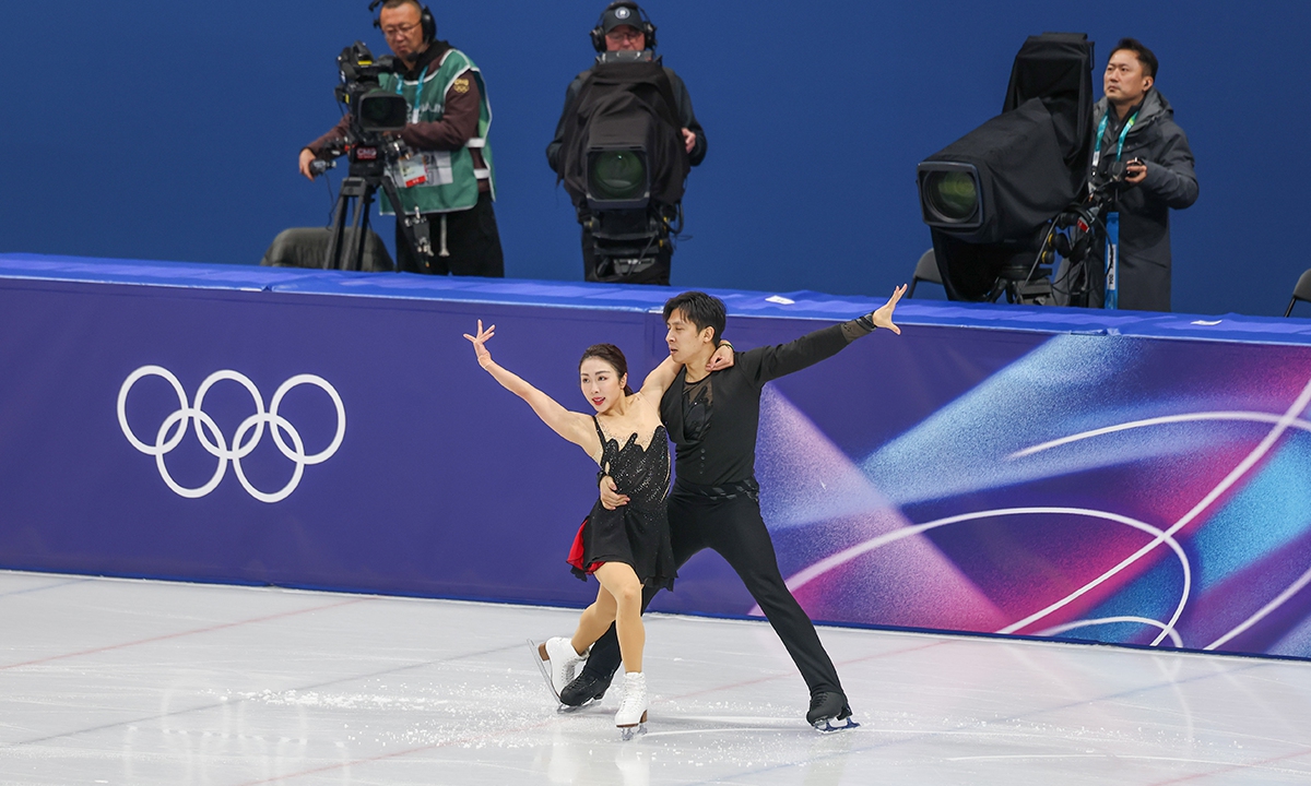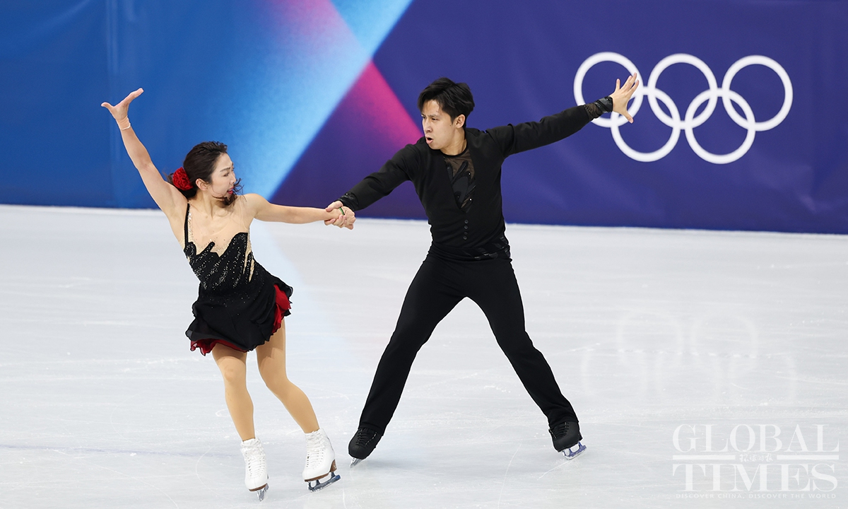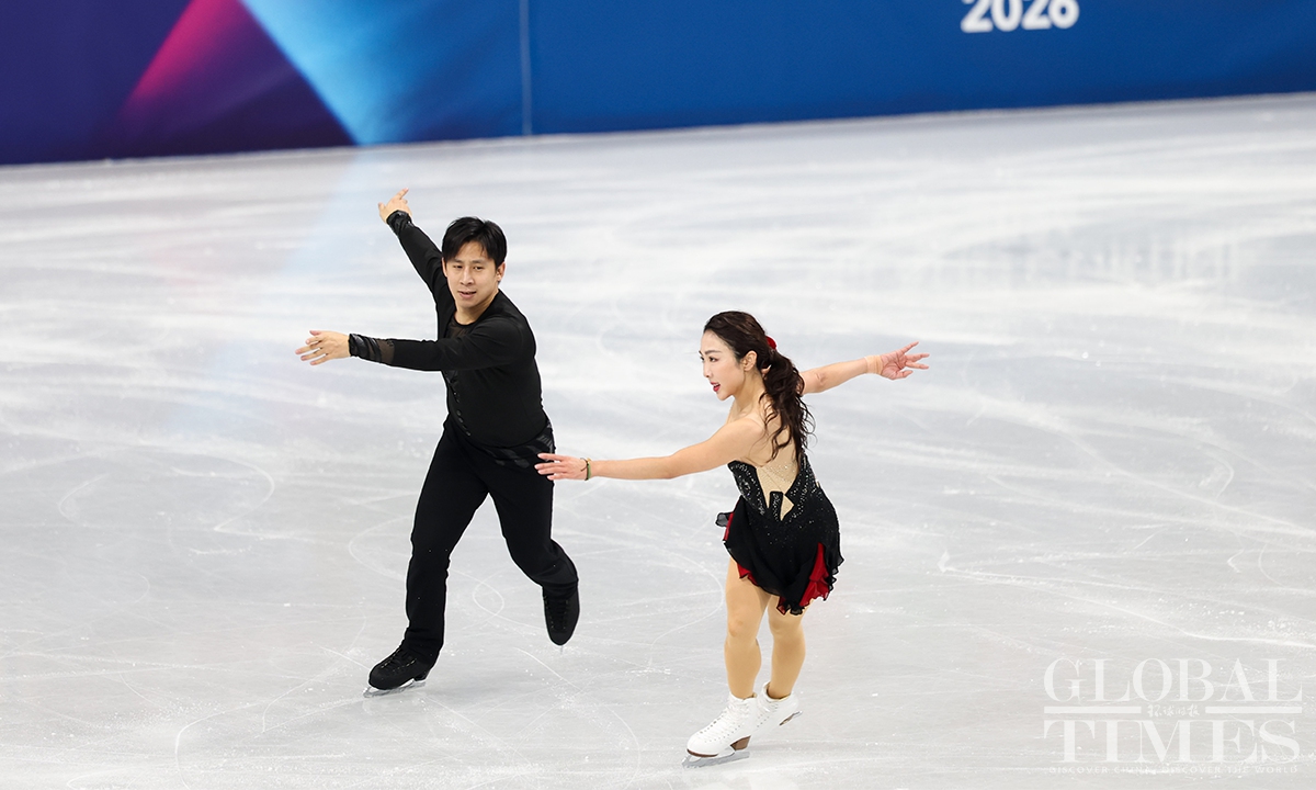 Sui Wenjing and Han Cong appeared at the team figure skating short program at the Milan Winter Olympics on February 6. (Photos: Chen Tao/GT)