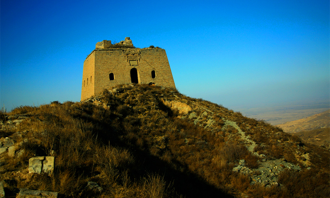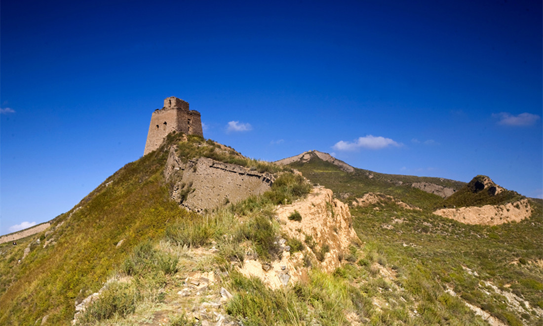 A signal tower on the Guangwu Great Wall looks out over the rolling hills below. Photo: Courtesy of Zhang Xiangdong/Wallstime figcaption >