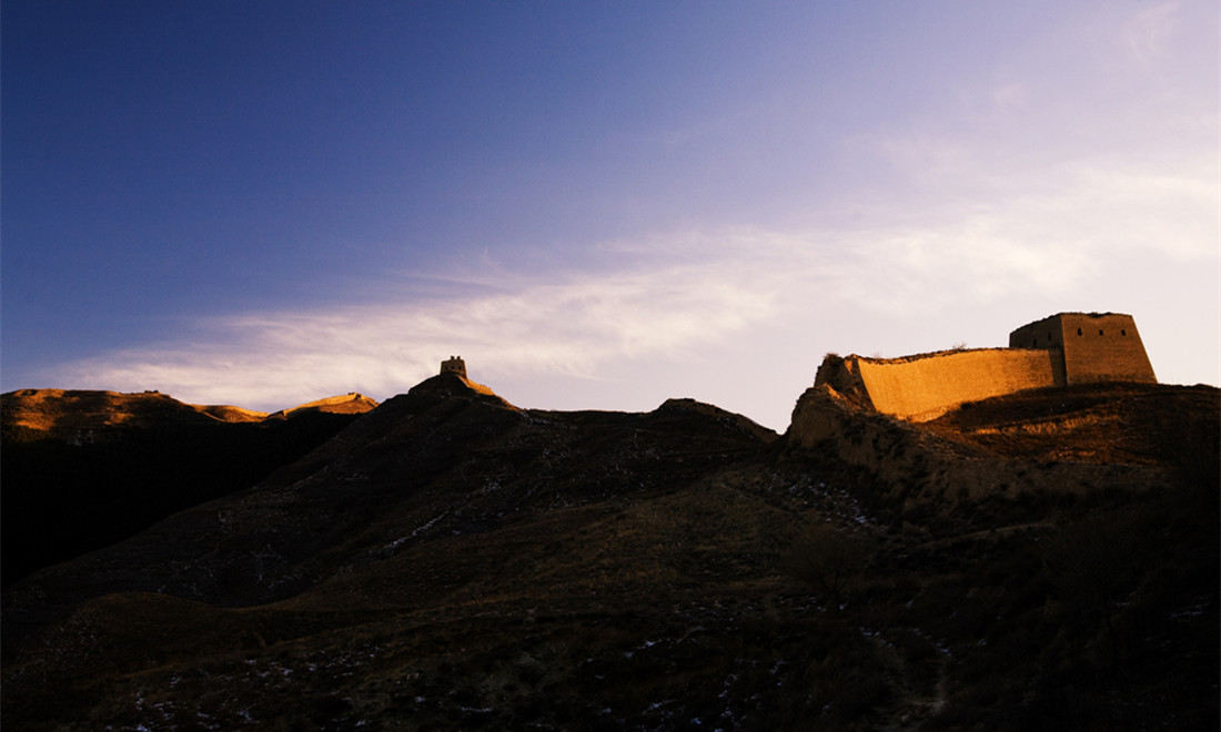 A section of the Guangwu Great Wall stands in fading light. Photo: Courtesy of Zhang Xiangdong/Wallstime figcaption >