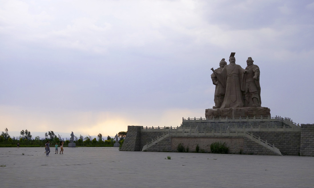 Statues of the Emperor Wu (middle) of Han Dynasty(206BC–AD25), General Wei Qing (right) and General Huo Qubing stand in a newly renovated square close to Old Guangwu City. Photo: Courtesy of Zhang Xiangdong/Wallstime