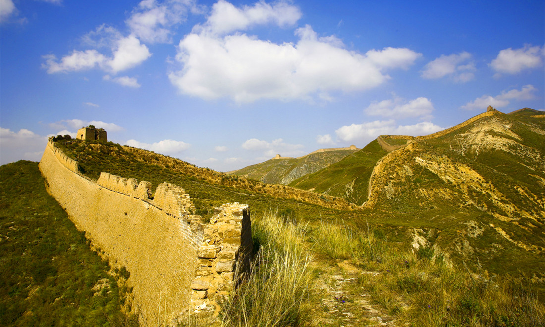 The Guangwu Great Wall stands against the backdrop of a brilliant blue sky. Photo: Courtesy of Zhang Xiangdong/Wallstime figcaption >
