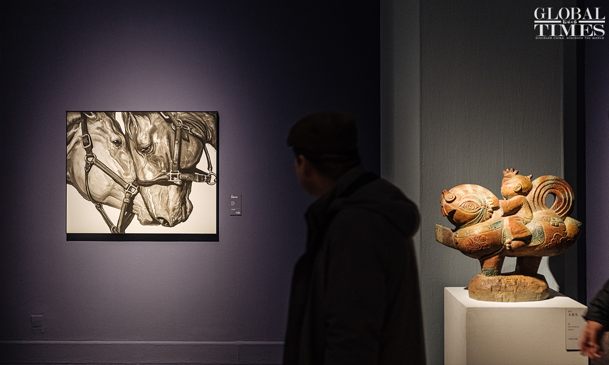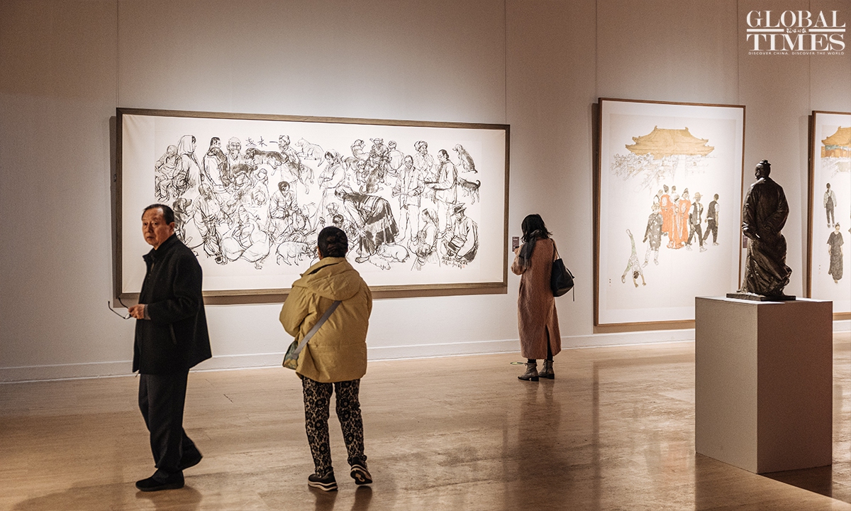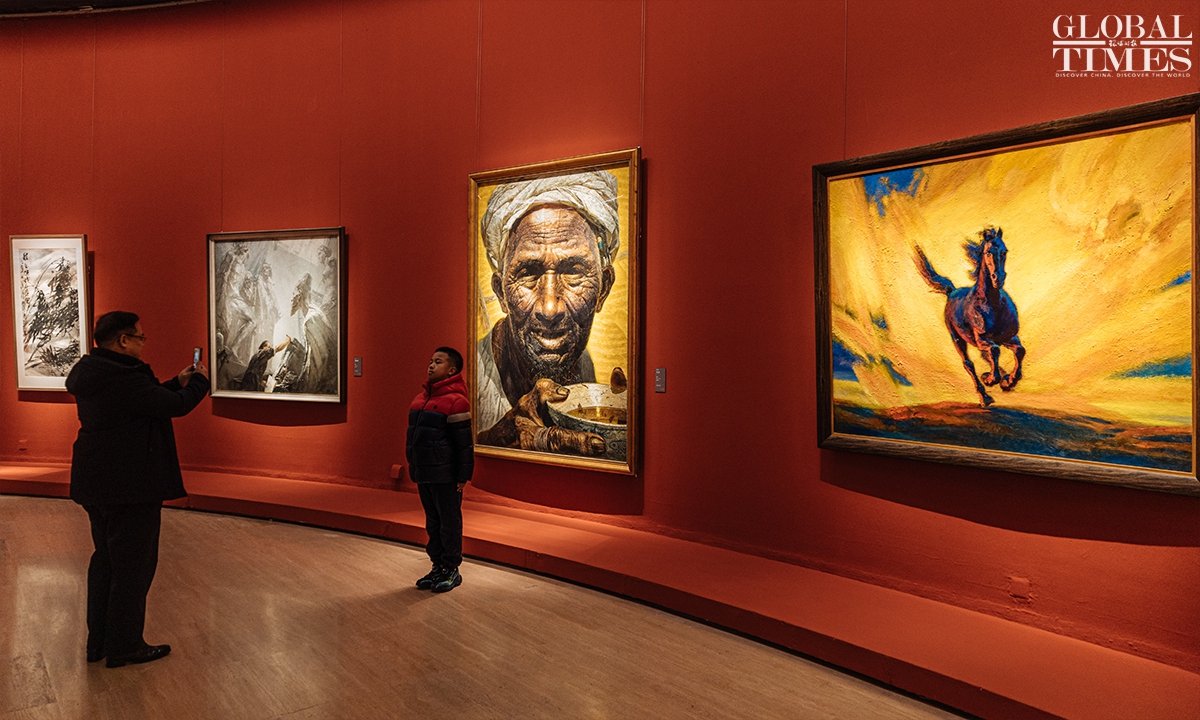 Jin Shangyi, honorary chairman of the China Artists Association, said at Monday’s opening that the five sections weave together the past and the present as they carry “the depth of time, the warmth of the era and the brilliance of art.” Photos: Li Hao/GT