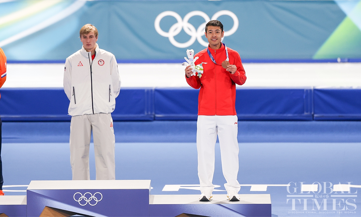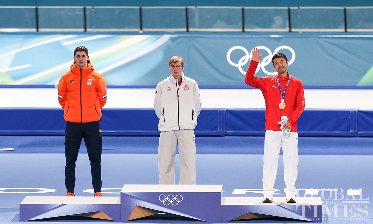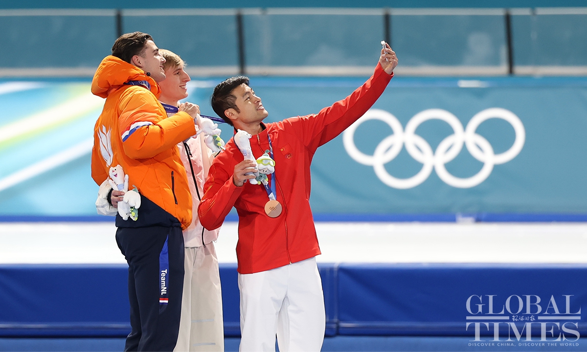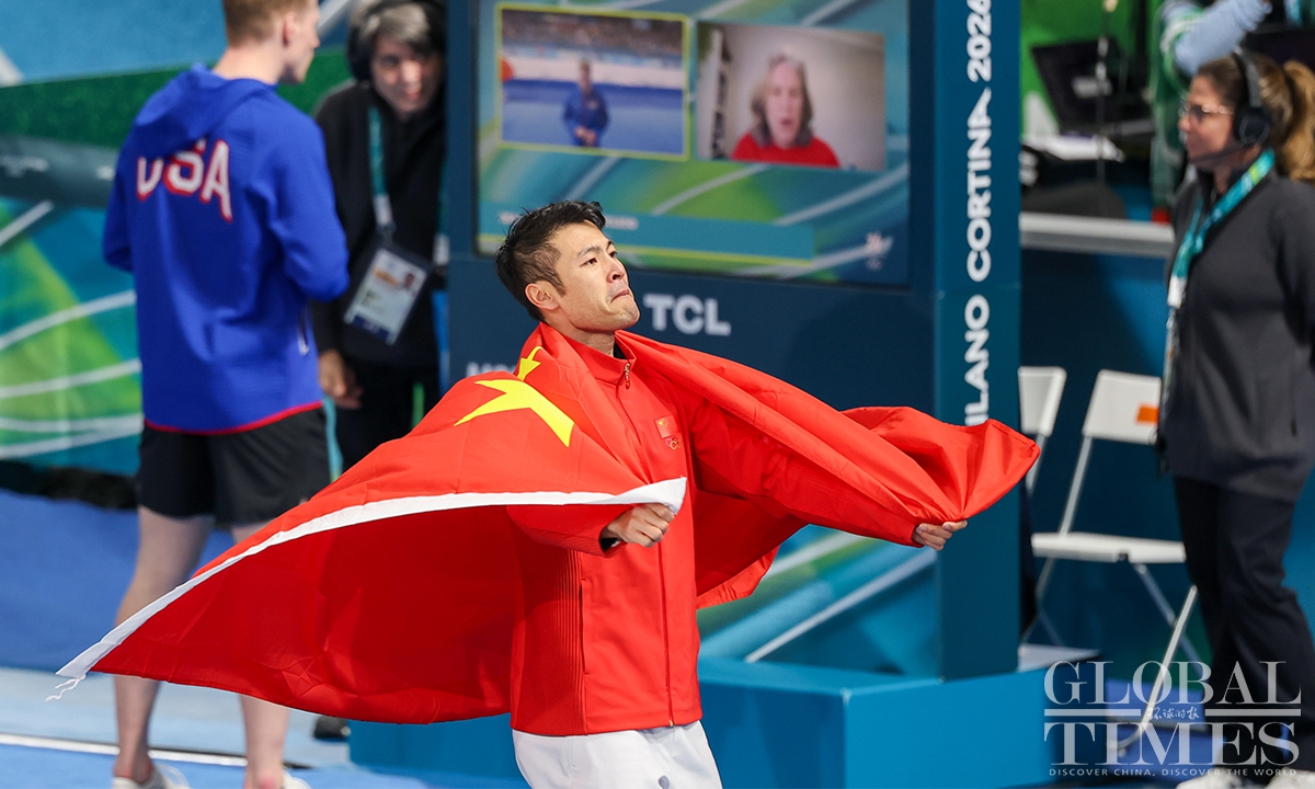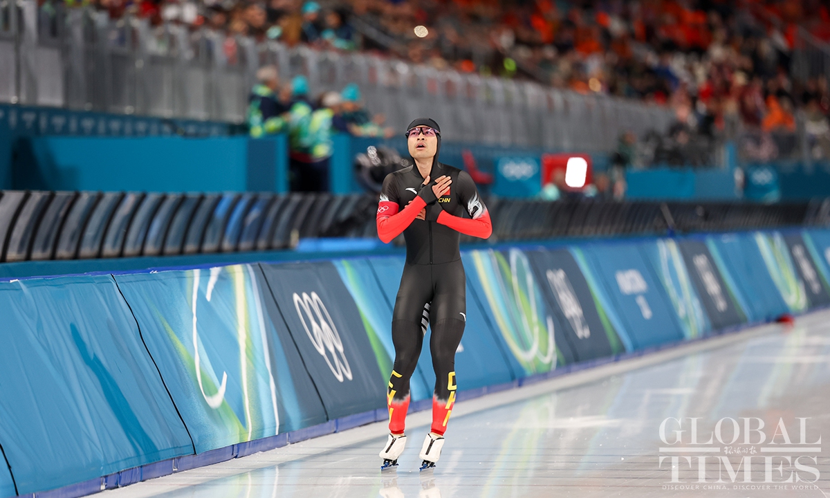 Local time on February 11, the Milano Cortina Winter Olympics men's 1000m speed skating final was held in Milan. China's Ning Zhongyan clocked 1:07.34 - his best low-altitude time of the season - to secure his first Olympic podium. Jordan Stolz of the United States took gold in 1:06.28, breaking the previous Olympic record set by Dutch skater Gerard van Velde at Salt Lake City 2002. (Photo: Chen Tao/ Global Times)