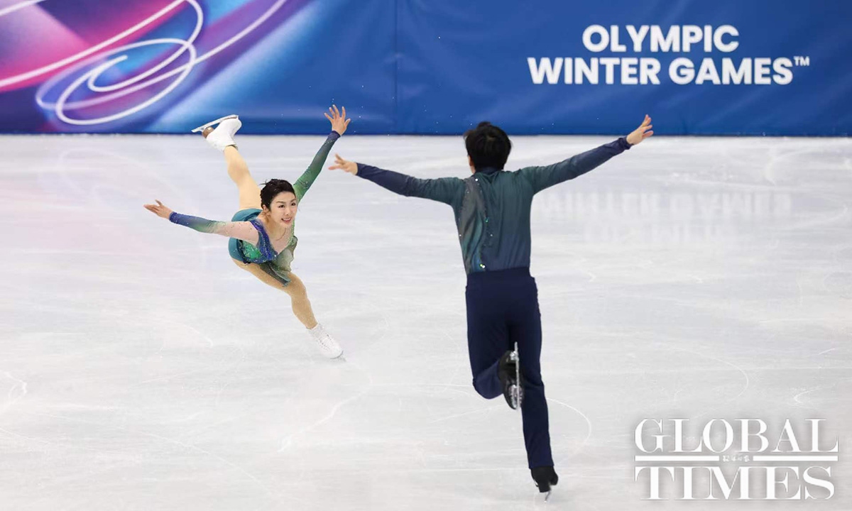 This marked the third Olympic appearance for Sui Wenjing and Han Cong. They won a silver medal at the Pyeongchang 2018 Winter Olympics and fulfilled their gold medal dream four years ago at the Beijing 2022 Winter Olympics. Photos: Chen Tao/GT