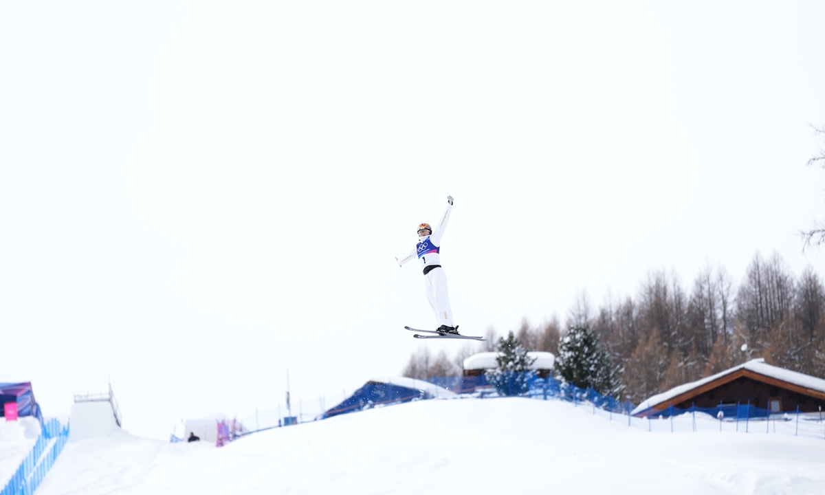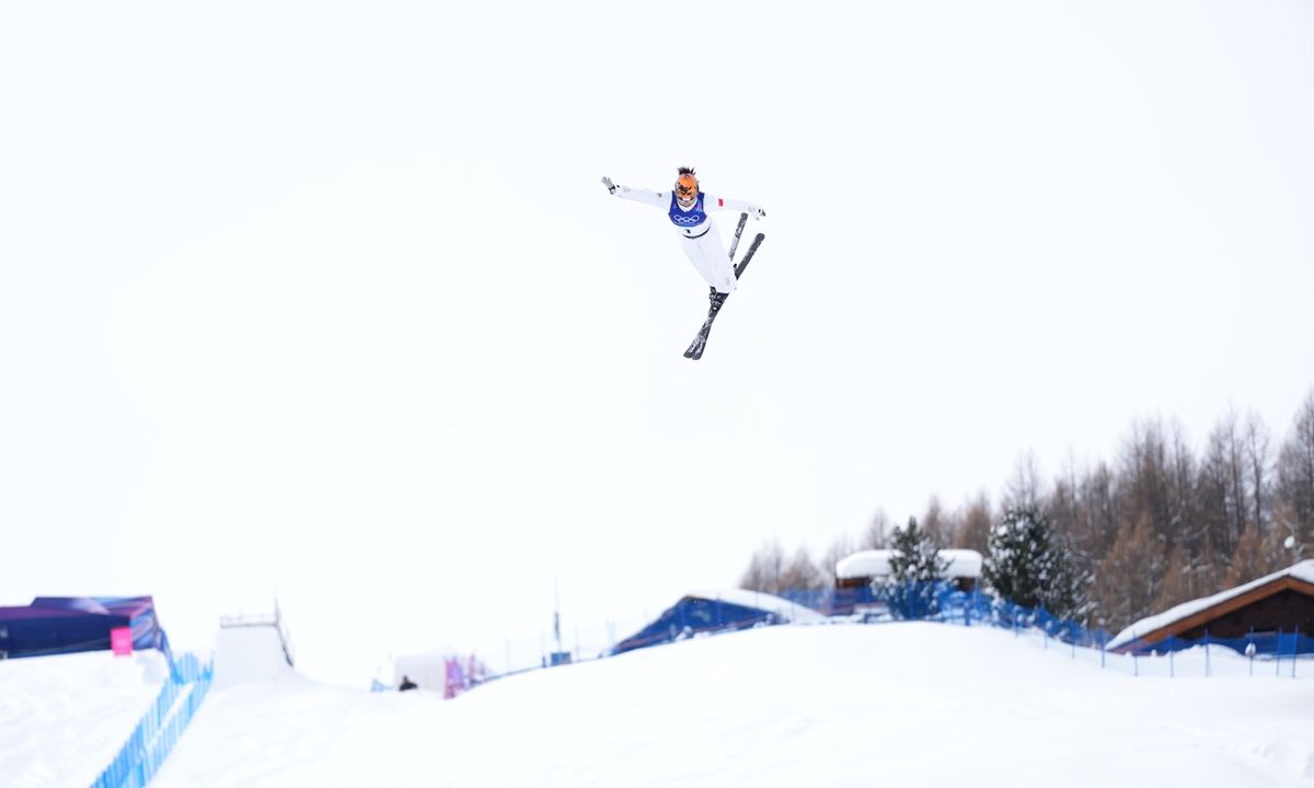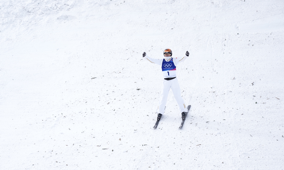 The 35-year-old Xu, third to jump in the super final, scored 112.90 points to secure the title. Australia's Danielle Scott took silver with 102.17, while China's Shao Qi earned bronze on 101.90. Another Chinese skier, Kong Fanyu, finished fourth with 101.31. Photos: Wang Liang/People's Daily