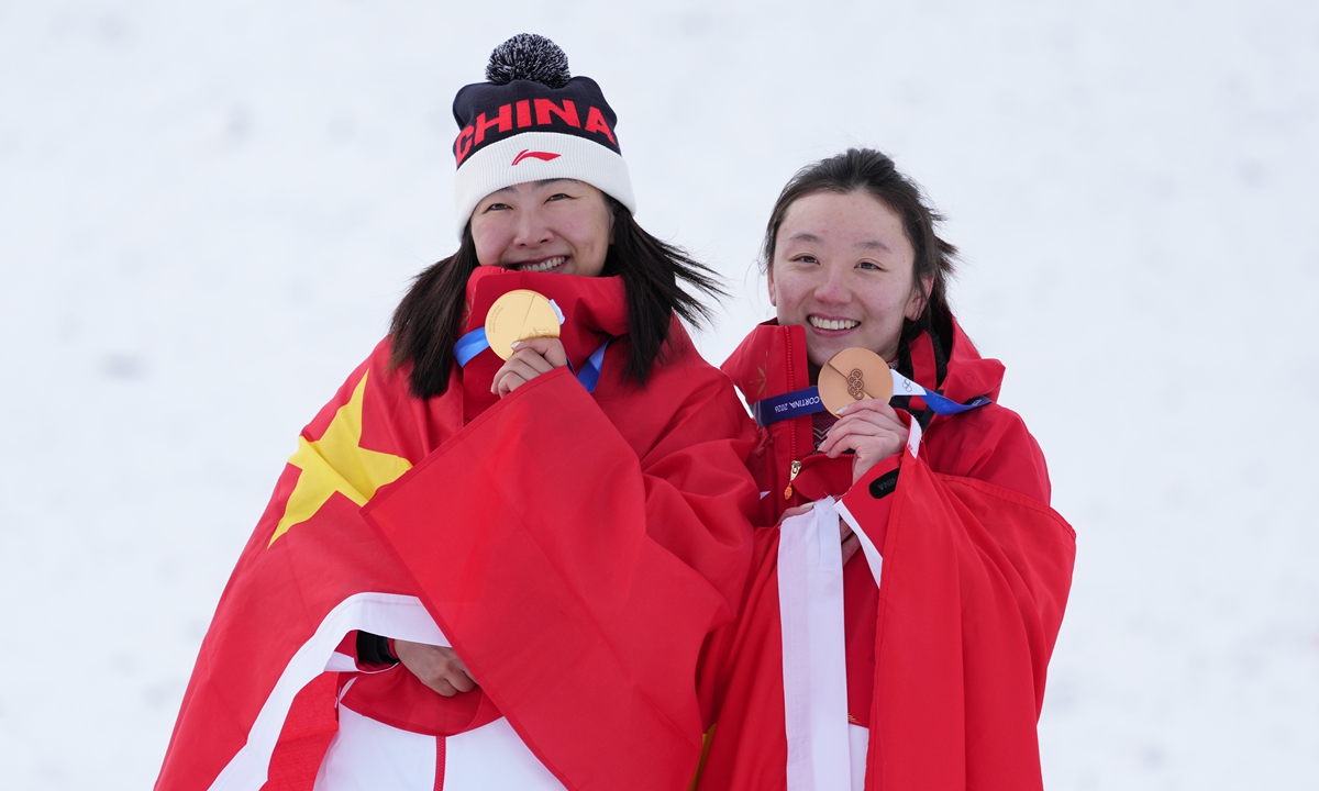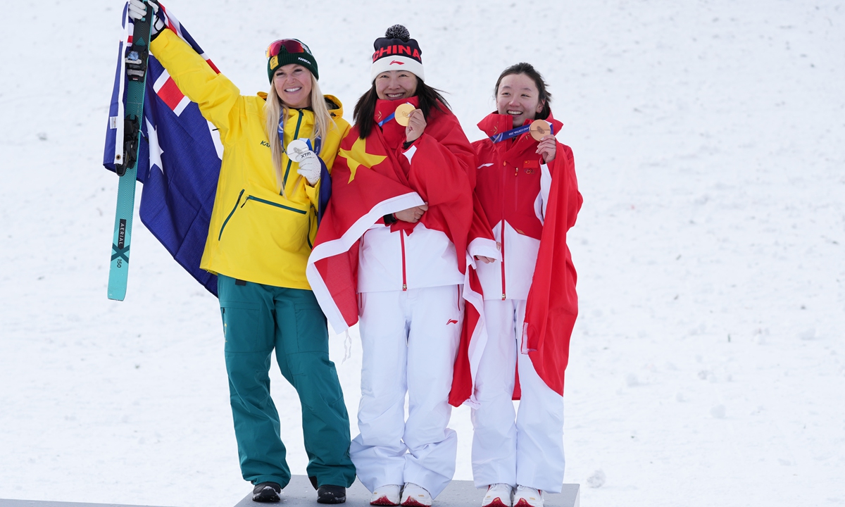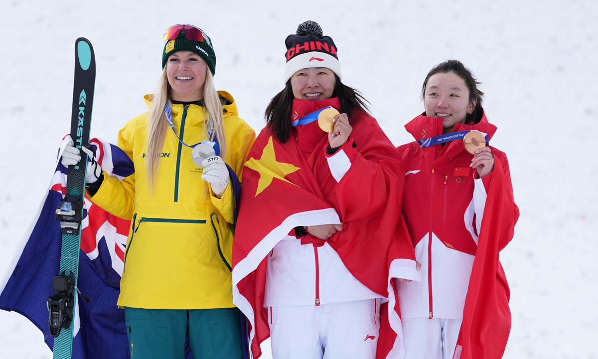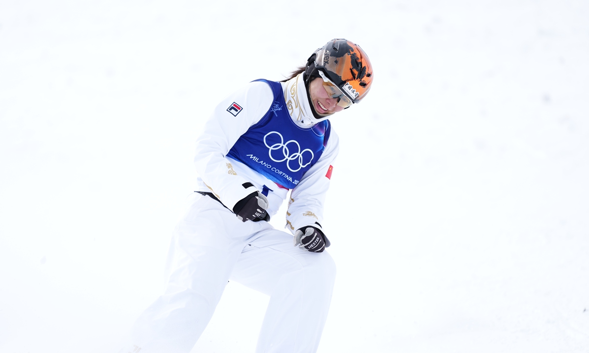 China's Xu Mengtao wins women's freeski aerials at Milan-Cortina Winter Olympics on February 18, 2026. This is the second gold medal for the Chinese delegation. Photo: Wang Liang/People's Daily figcaption >