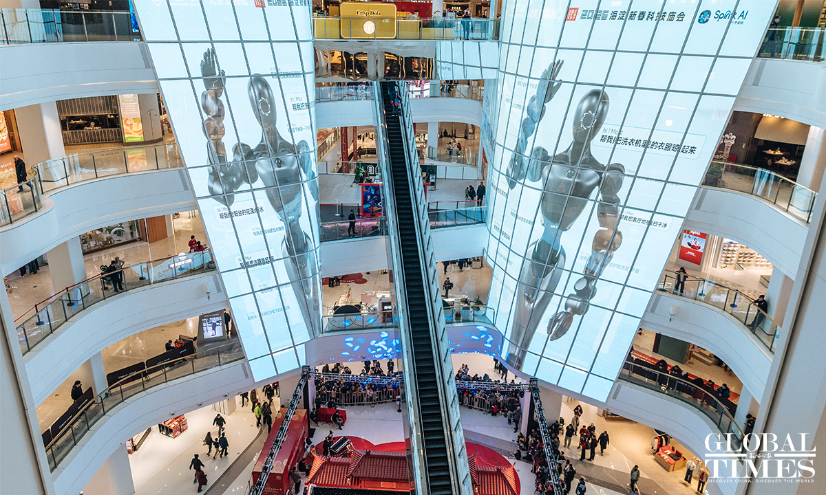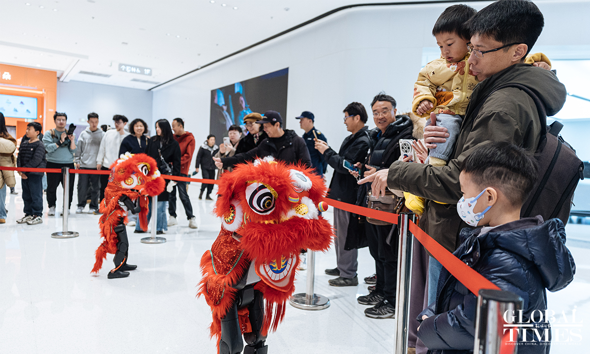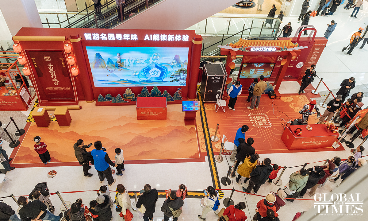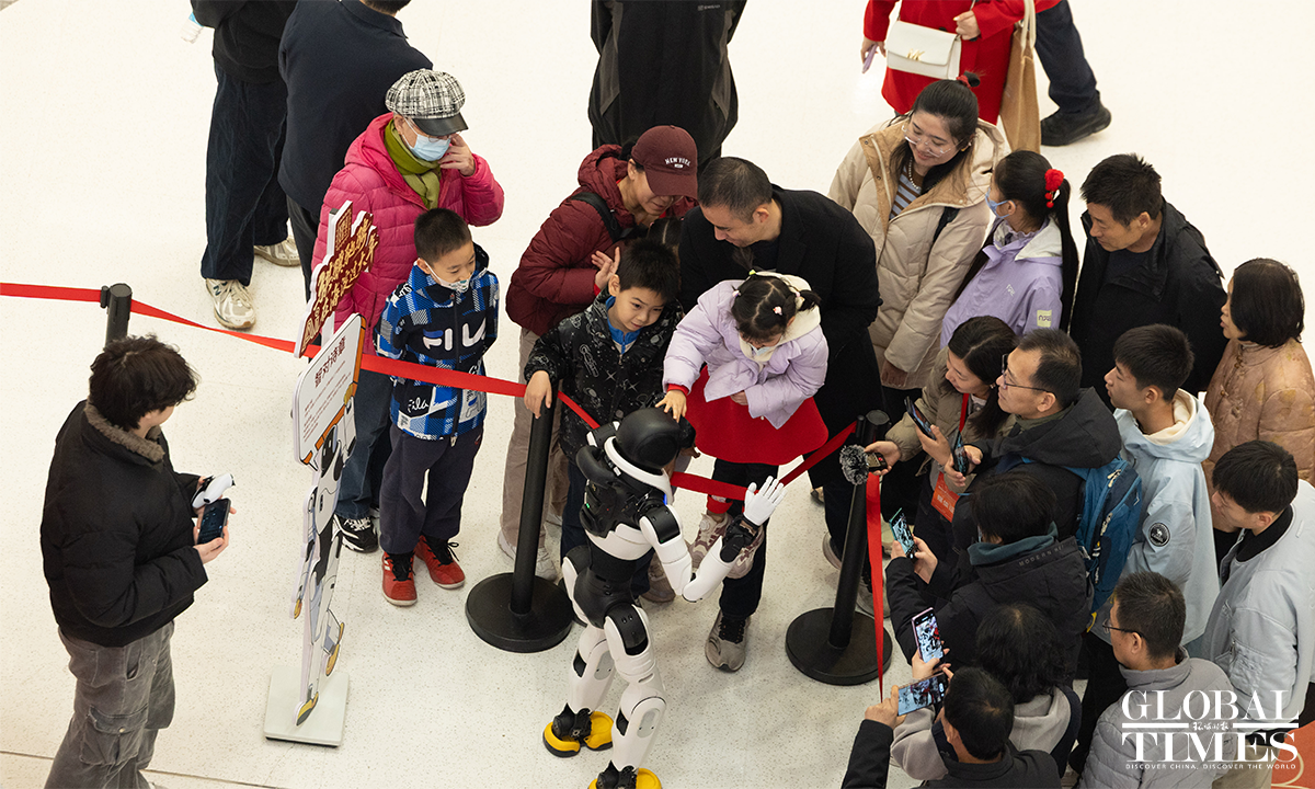 The 2026 Haidian Spring Festival-Themed Sci-Tech Temple Fair is being held at the main venue of Wukesong Wanda in Beijing from February 19 to 23. The temple fair brings together more than 70 companies and over 150 interactive exhibits, featuring 43 embodied robotic displays – including the same kind of robots seen on the Spring Festival Gala – as well as a wide range of cutting-edge interactive experiences powered by large-scale AI models, digital humans, VR, and AIGC technologies. Photos: Li Hao/GT