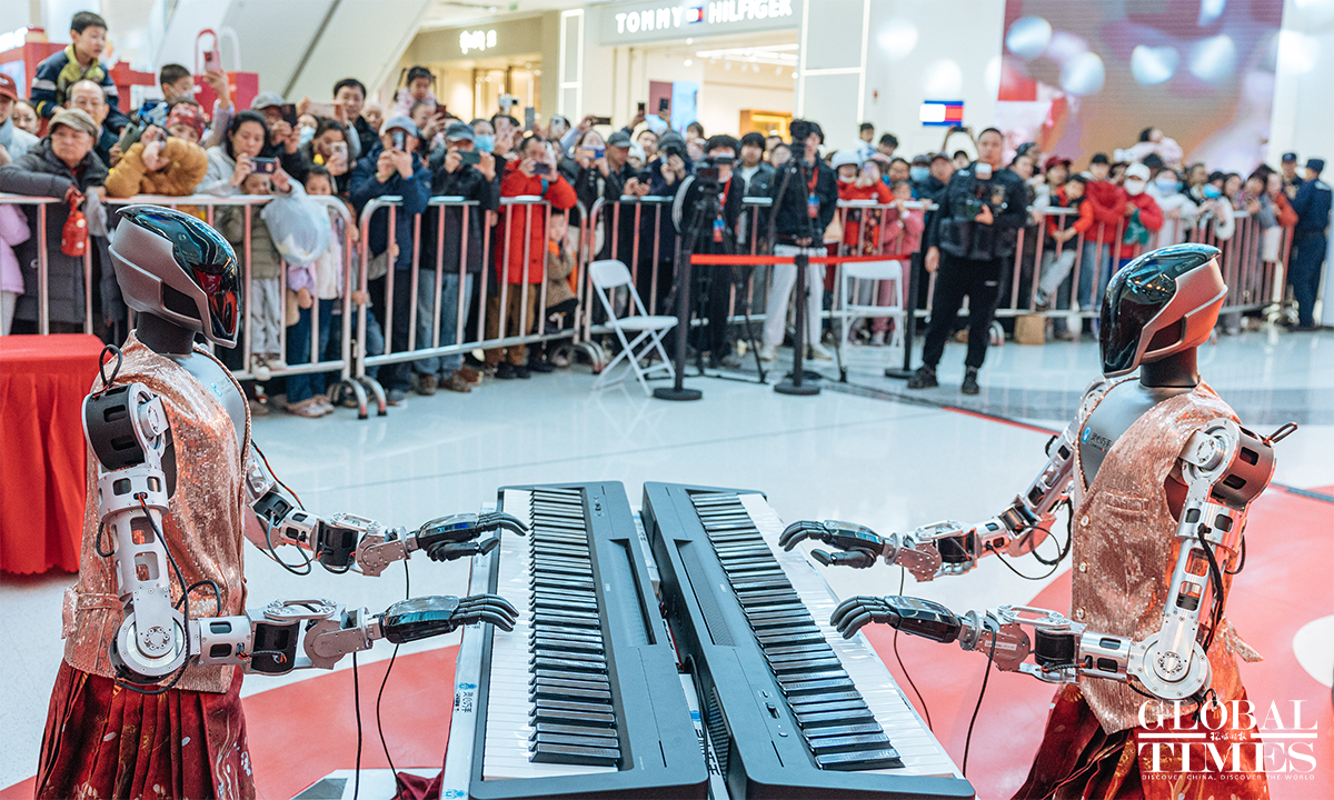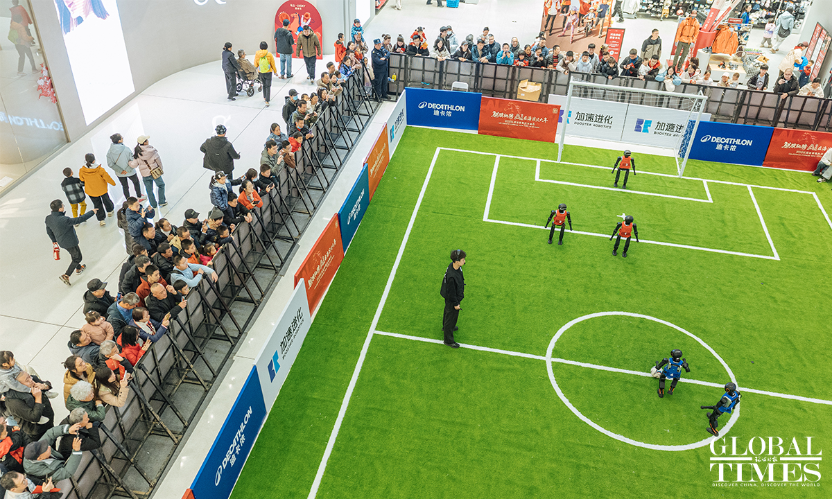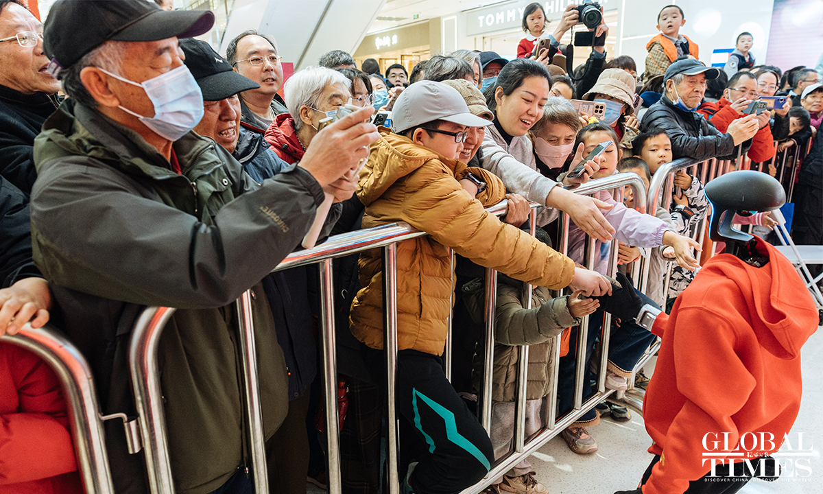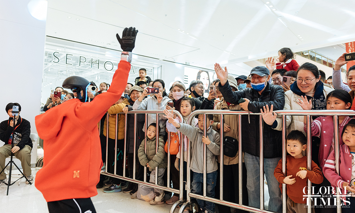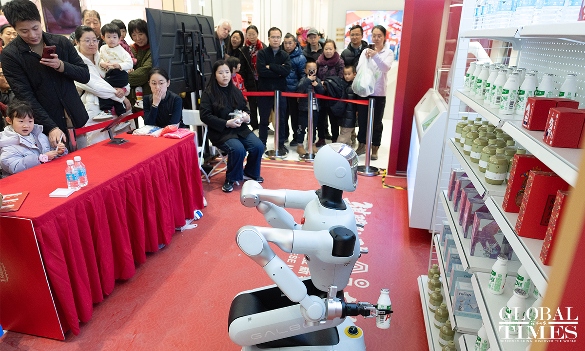 The 2026 Haidian Spring Festival-Themed Sci-Tech Temple Fair is being held at the main venue of Wukesong Wanda in Beijing from February 19 to 23. The temple fair brings together more than 70 companies and over 150 interactive exhibits, featuring 43 embodied robotic displays – including the same kind of robots seen on the Spring Festival Gala – as well as a wide range of cutting-edge interactive experiences powered by large-scale AI models, digital humans, VR, and AIGC technologies. Photos: Li Hao/GT