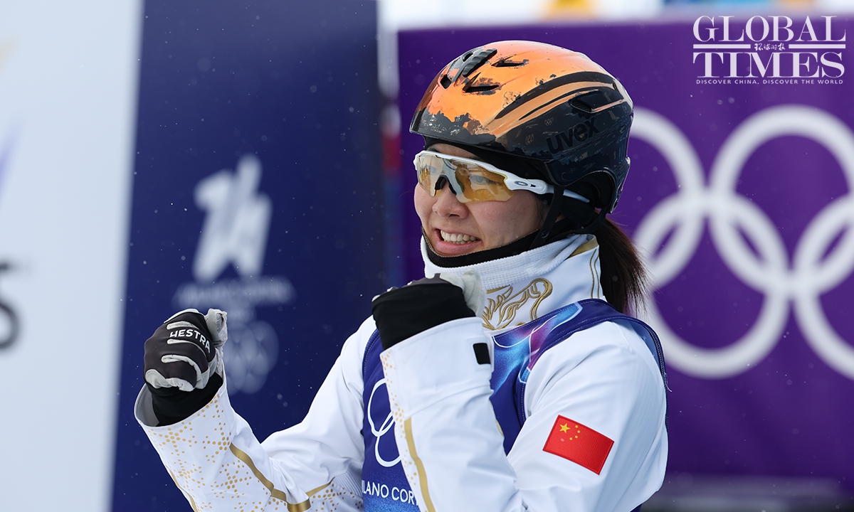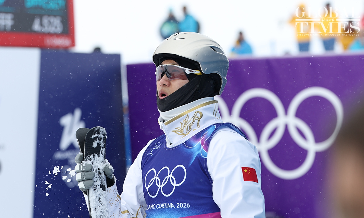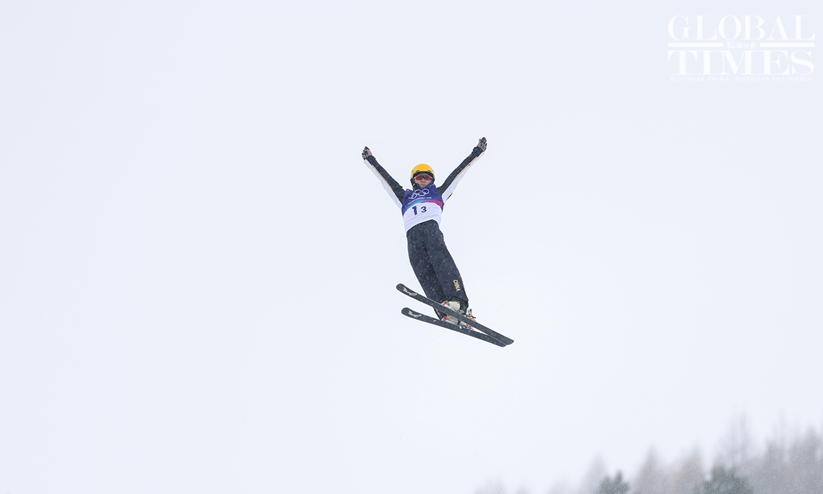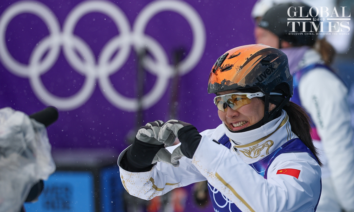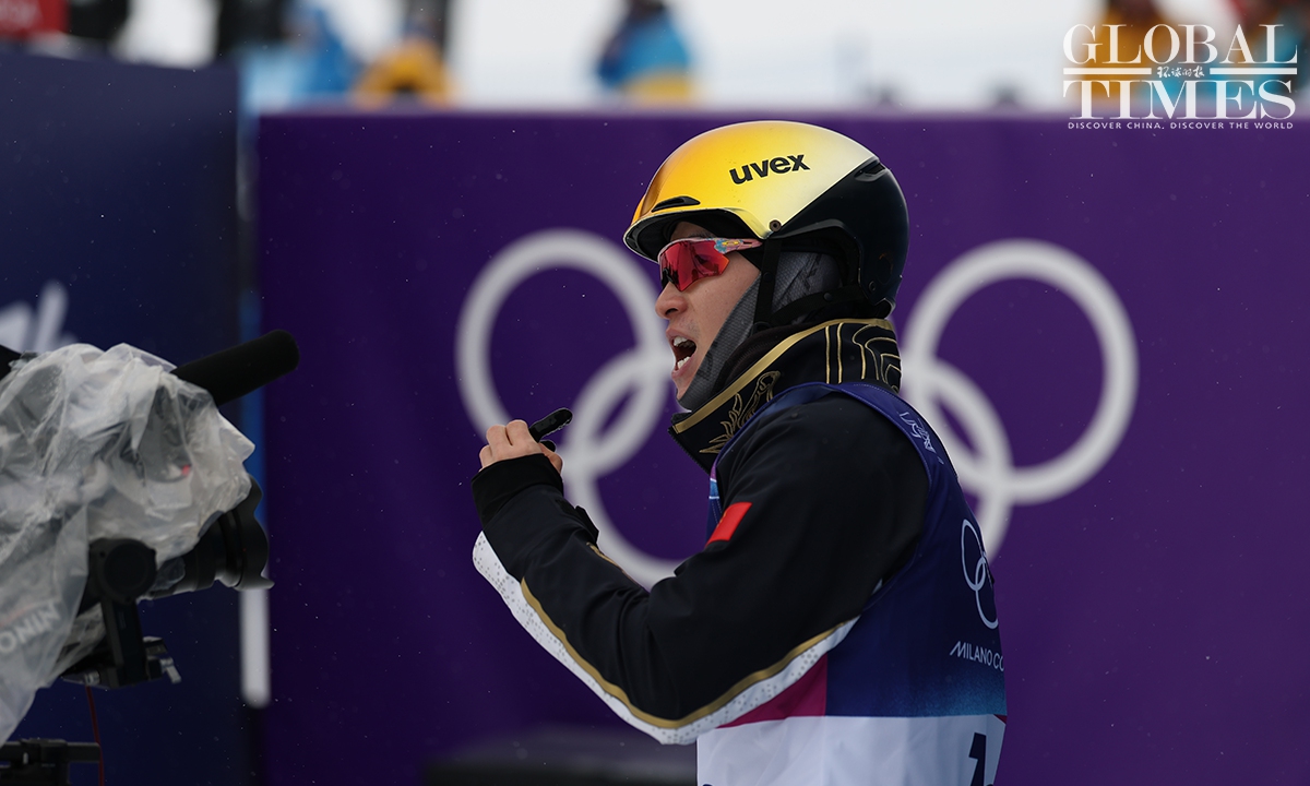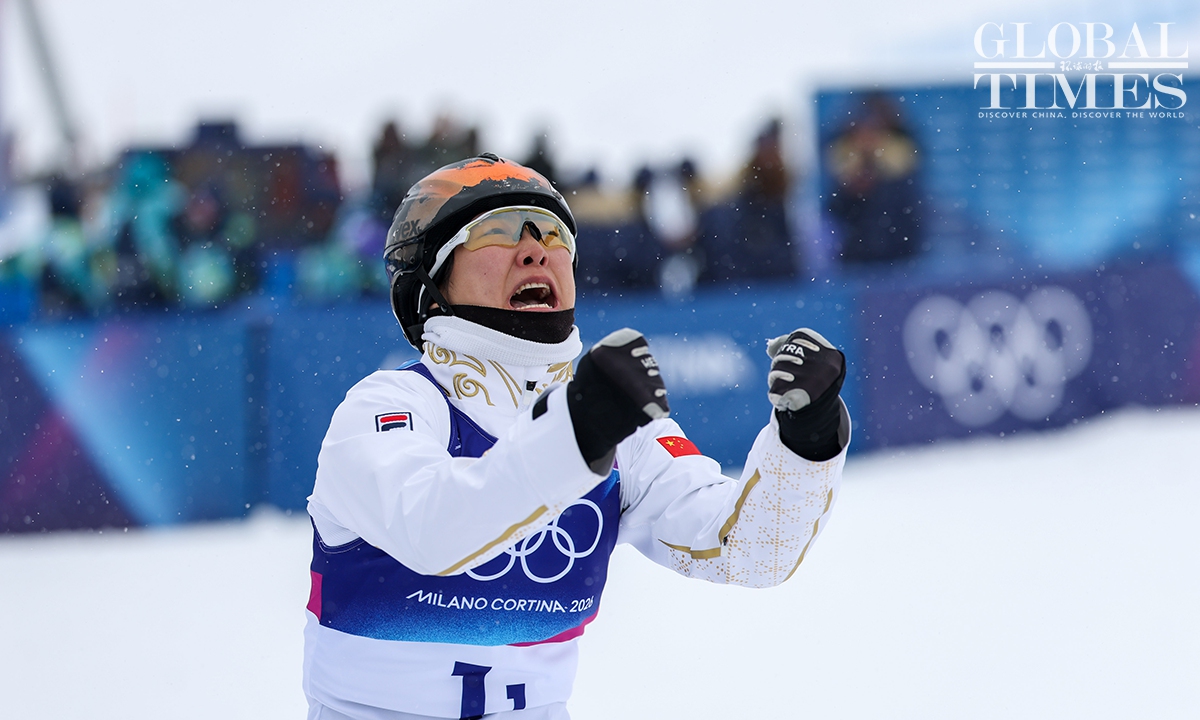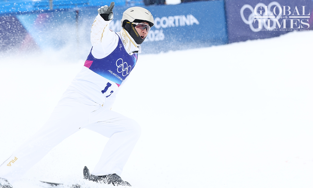 China won the bronze medal in the freestyle skiing mixed team aerials of the Milan-Cortina Winter Olympics on February 21. The Chinese trio of Xu Mengtao, Wang Xindi and Li Tianma scored a combined 279.68 points to secure a place on the podium. Team USA defended its title to take gold, while Switzerland finished second to claim silver. Photos: Chen Tao/GT