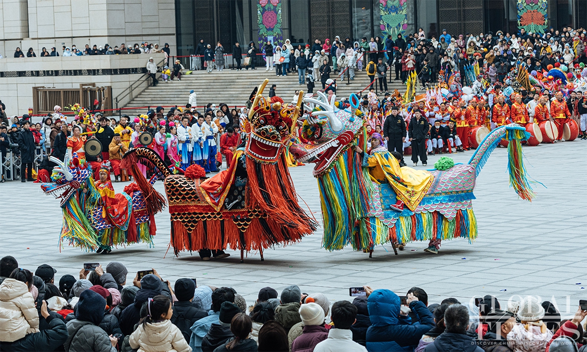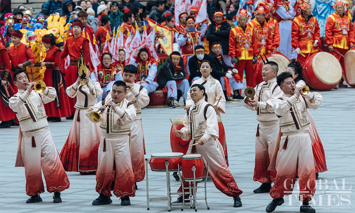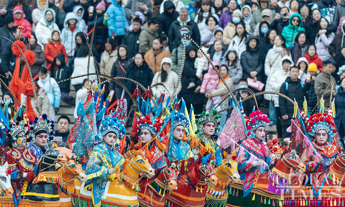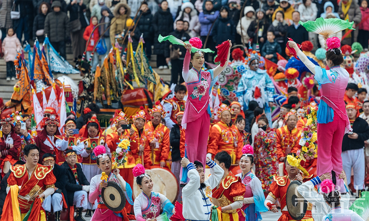 To celebrate the arrival of the Lantern Festival which will fall on next Tuesday, a series of folk events was held at the Chinese Traditional Culture Museum (CTCM) on Saturday. The event brought together nearly 600 performers from folk exhibition teams across eight provinces (autonomous regions and municipalities), including Beijing, Shaanxi, Shanxi, Zhejiang and Inner Mongolia, to present 14 intangible cultural heritage programs. The activities included square performances, evening shows, and online livestreaming, allowing visitors to immerse themselves in the festive atmosphere, experience the charm of intangible cultural heritage up close, and celebrate the festival together. (Photos: Li Hao/GT)