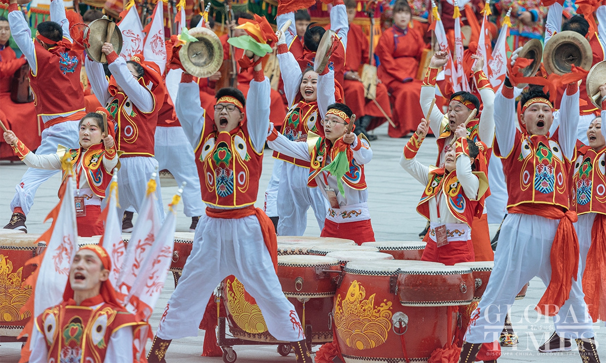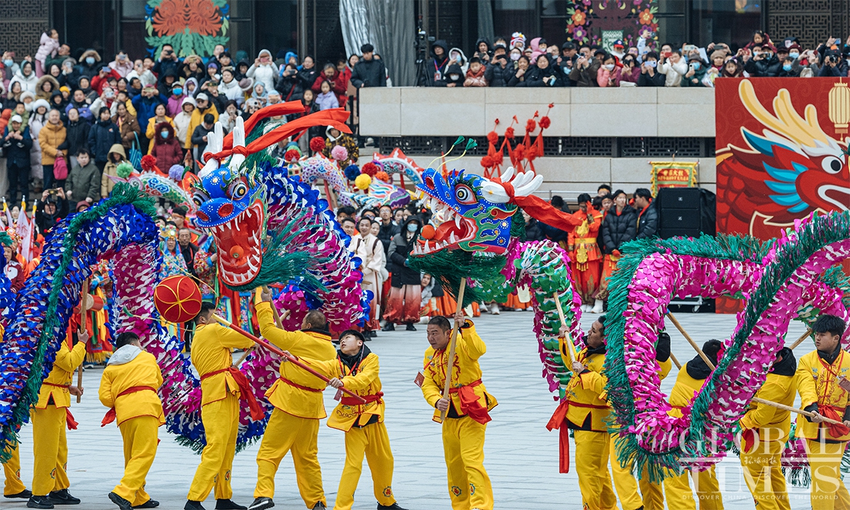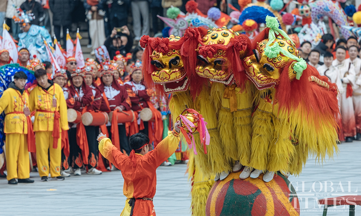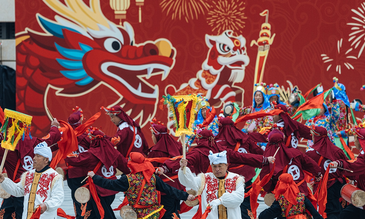 To celebrate the arrival of the Lantern Festival which will fall on next Tuesday, a series of folk events was held at the Chinese Traditional Culture Museum (CTCM) on Saturday. The event brought together nearly 600 performers from folk exhibition teams across eight provinces (autonomous regions and municipalities), including Beijing, Shaanxi, Shanxi, Zhejiang and Inner Mongolia, to present 14 intangible cultural heritage programs. The activities included square performances, evening shows, and online livestreaming, allowing visitors to immerse themselves in the festive atmosphere, experience the charm of intangible cultural heritage up close, and celebrate the festival together. (Photos: Li Hao/GT)