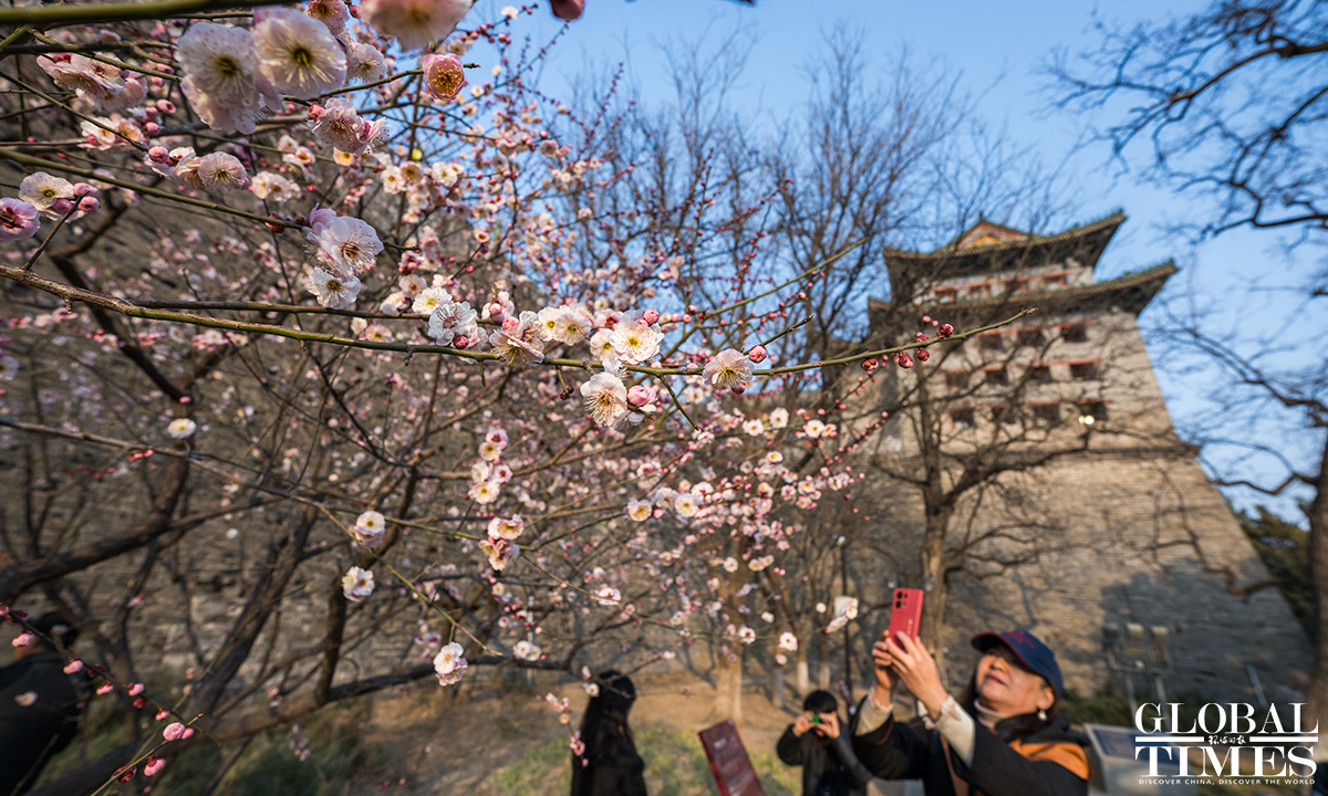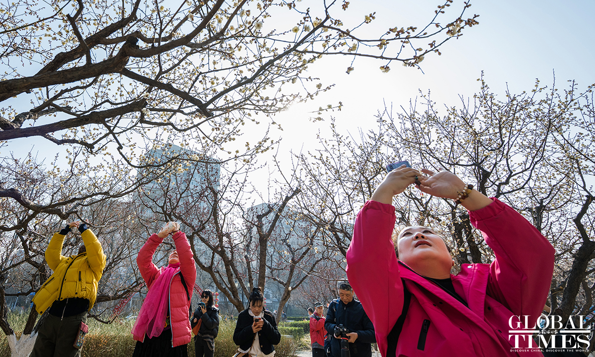 Get ready for Beijing's stunning spring bloom! As warmth returns, a vibrant tapestry of peach, plum, and winter jasmine awakens across the city's parks. From Beihai Park to Jingshan Park, nature's artistry invites citizens to stroll and savor the season. With spring deepening, Beijing is set to welcome its prime flower-viewing season, running from mid-March to early May. Photos: Chen Tao/GT