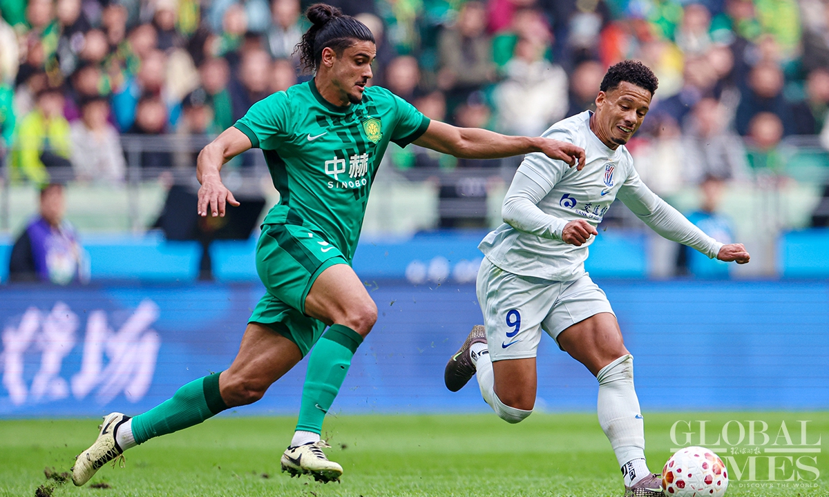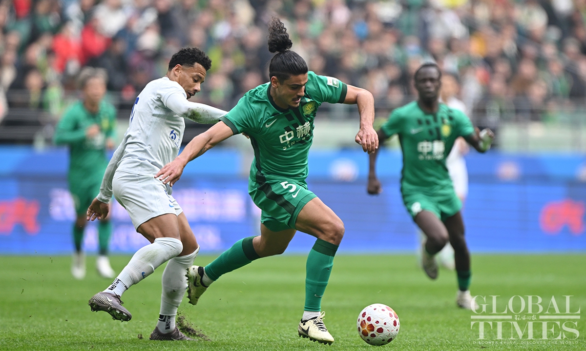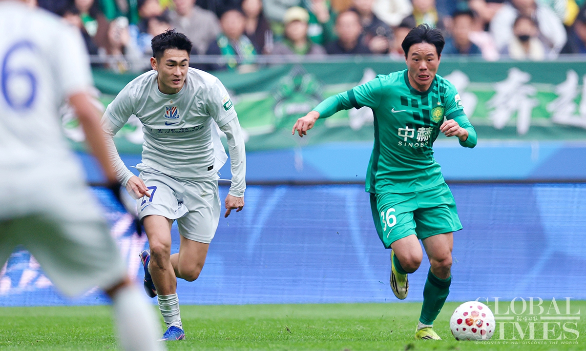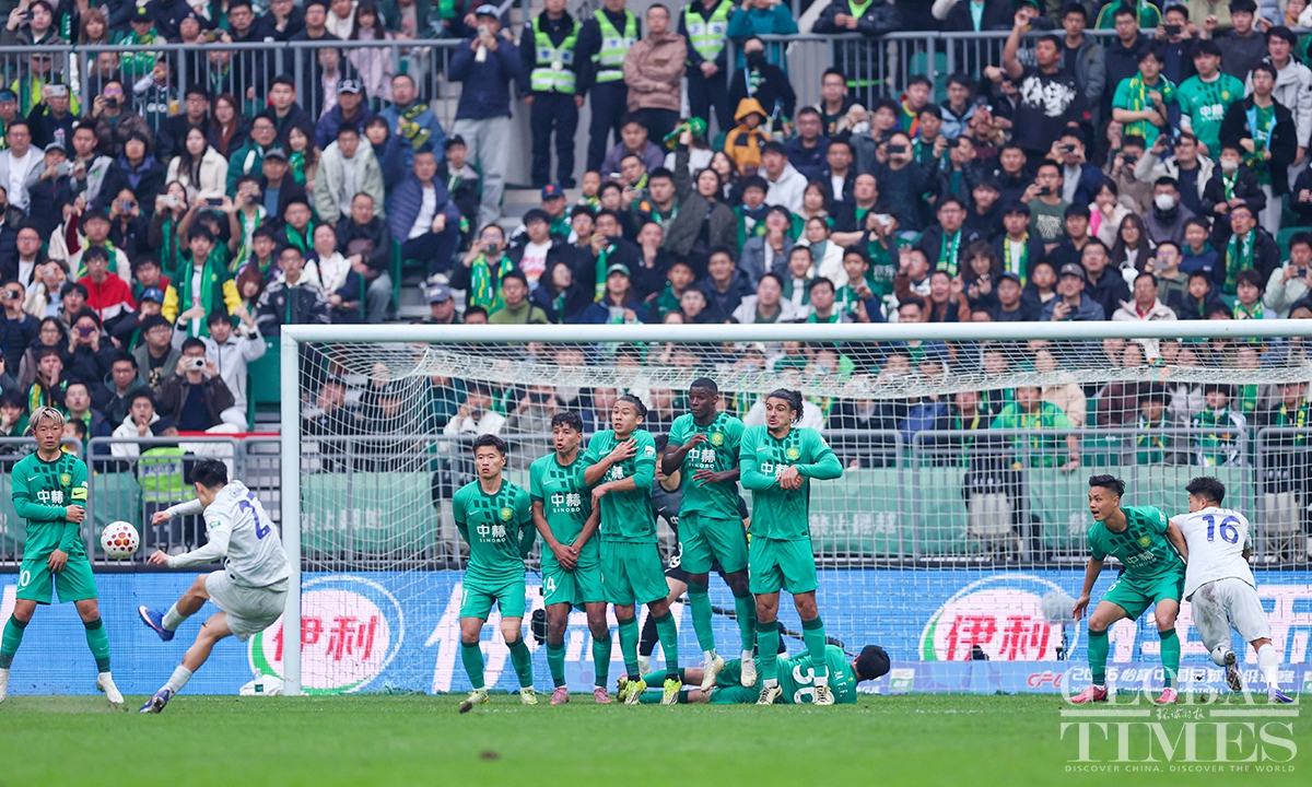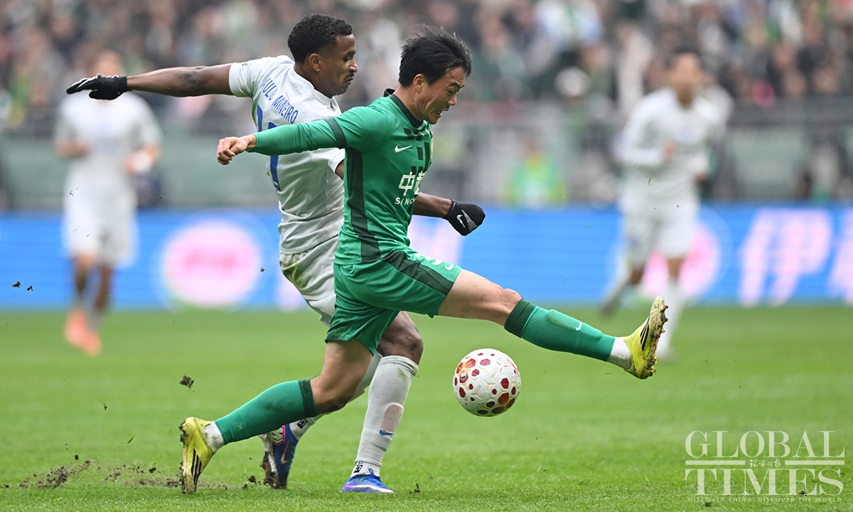 The first home game of Chinese Super League giants Beijing Guoan in the 2026 season at the Workers' Stadium in Beijing saw a new attendance record of 64,118 people for the iconic venue, as Guoan held visiting Shanghai Shenhua to a 1-1 draw on Saturday. Guoan's attendance record is the second highest in Chinese Super League all-time history. (Photos: Cui Meng, Lu Wenao/GT)