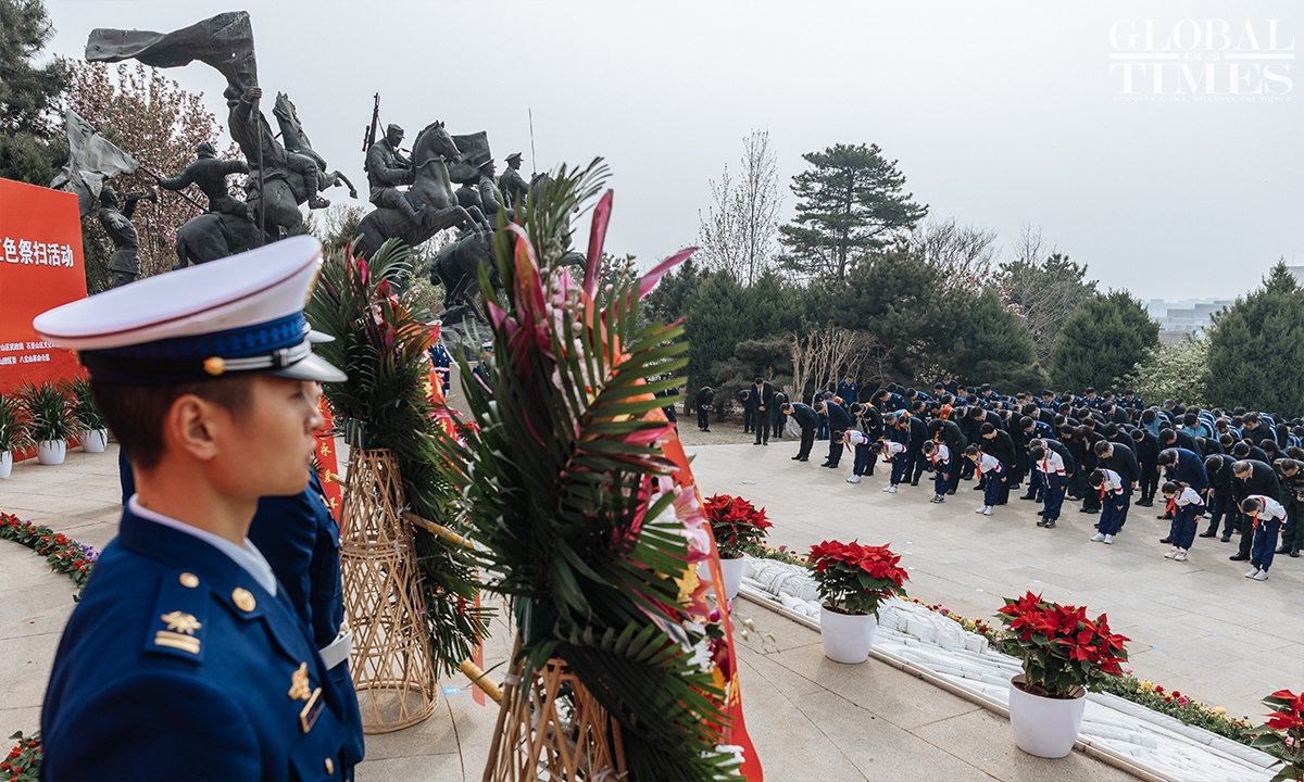 On April 3, 2026, two days before the Tomb Sweeping Day, a memorial ceremony was held at the Babaoshan Revolutionary Cemetery in Shijingshan District, Beijing. Participants paid tribute to revolutionary martyrs by bowing before the statue, expressing deep remembrance and profound respect. The event aimed to honor those who sacrificed their lives for national independence, people’s liberation, and the country’s prosperity, while carrying forward the red legacy and gathering strength for the journey ahead. Photos: Li Hao/GT