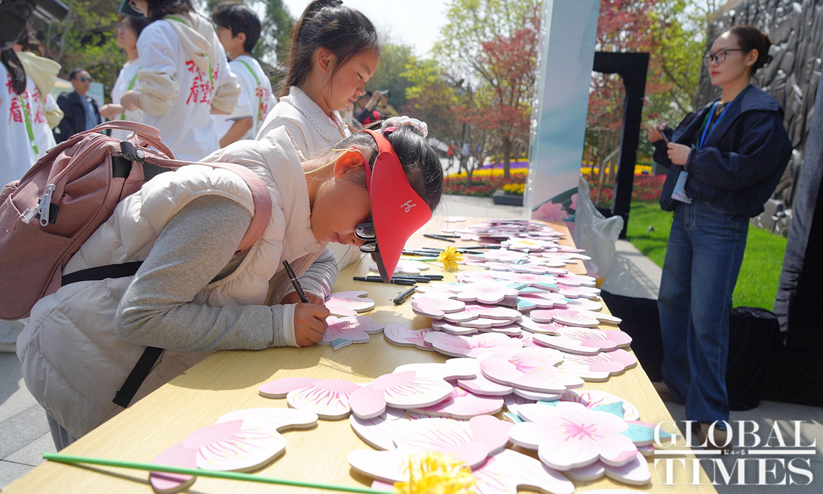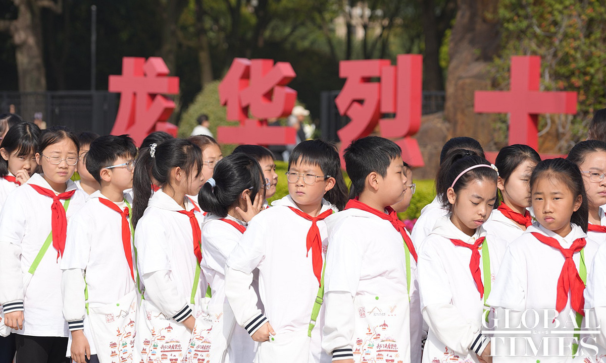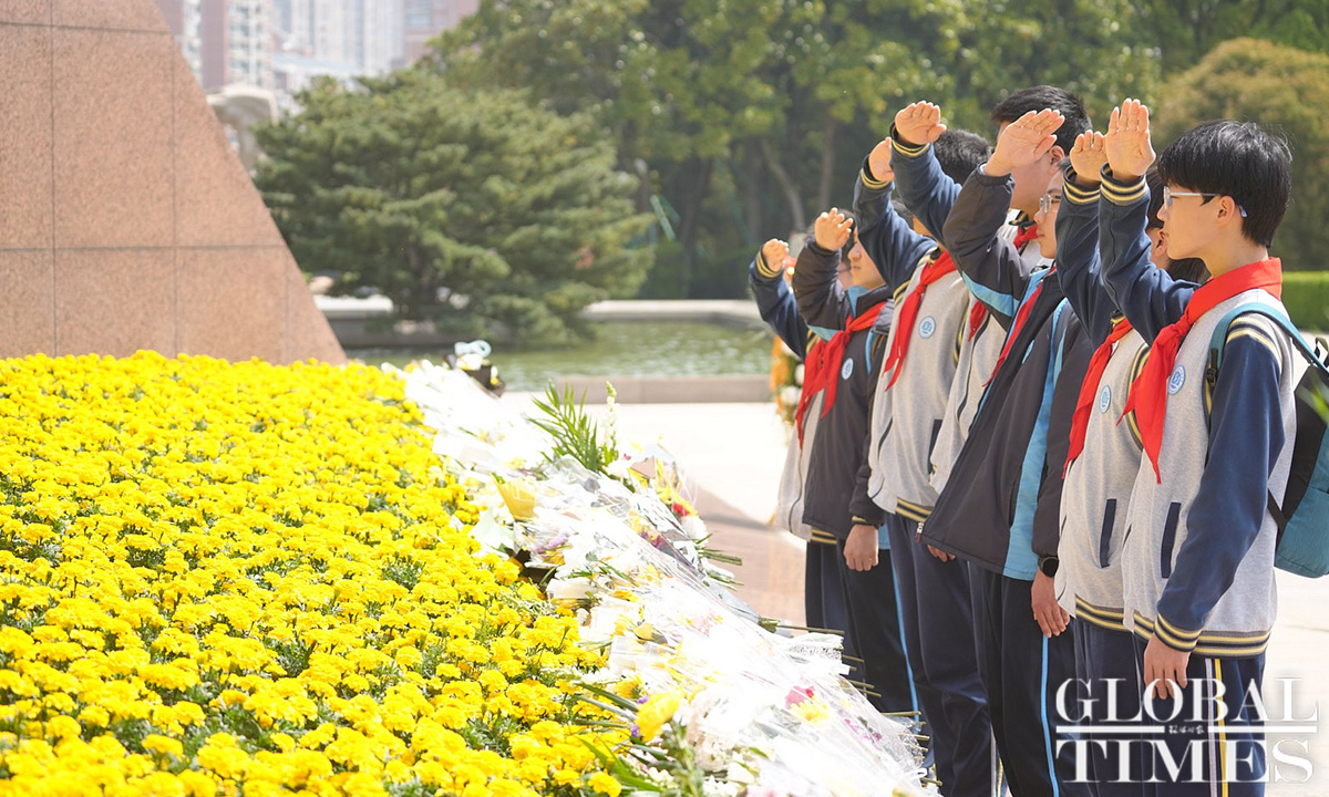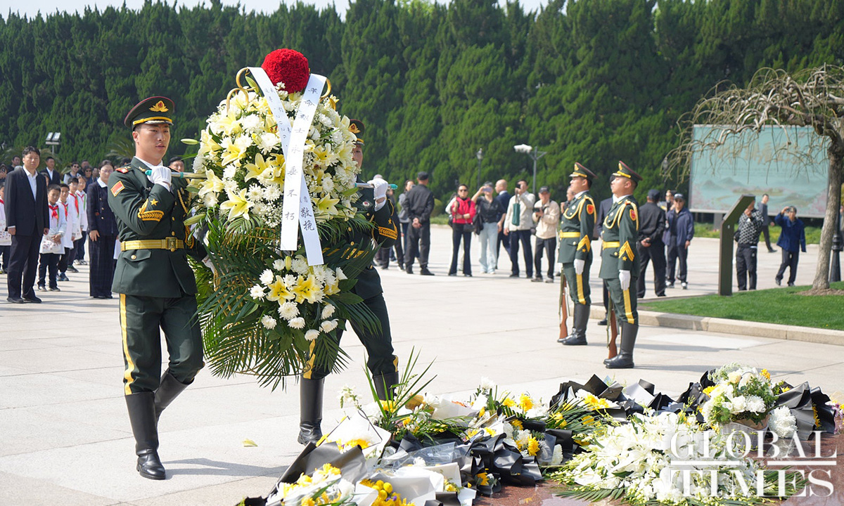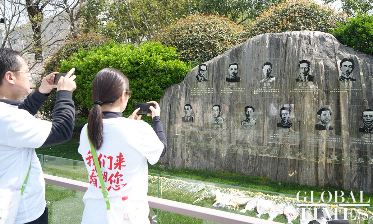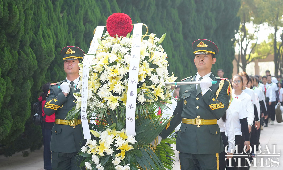 Commemorative activities were held at the Shanghai Longhua Martyr Cemetery and several martyr memorial venues across Shanghai on Sunday to honor the revolutionary martyrs who sacrificed their lives for China’s national independence and development. Approximately 200 people attended the commemoration at the Shanghai Longhua Martyr Cemetery, including youth representatives from local schools, representatives from revolutionary families, and active-duty military personnel and veterans. Sunday marked this year’s Qingming Festival, also known as Tomb Sweeping Day, a traditional Chinese festival during which people pay tribute to the decreased and honor their ancestors. (Photos: Lu Ting/GT)