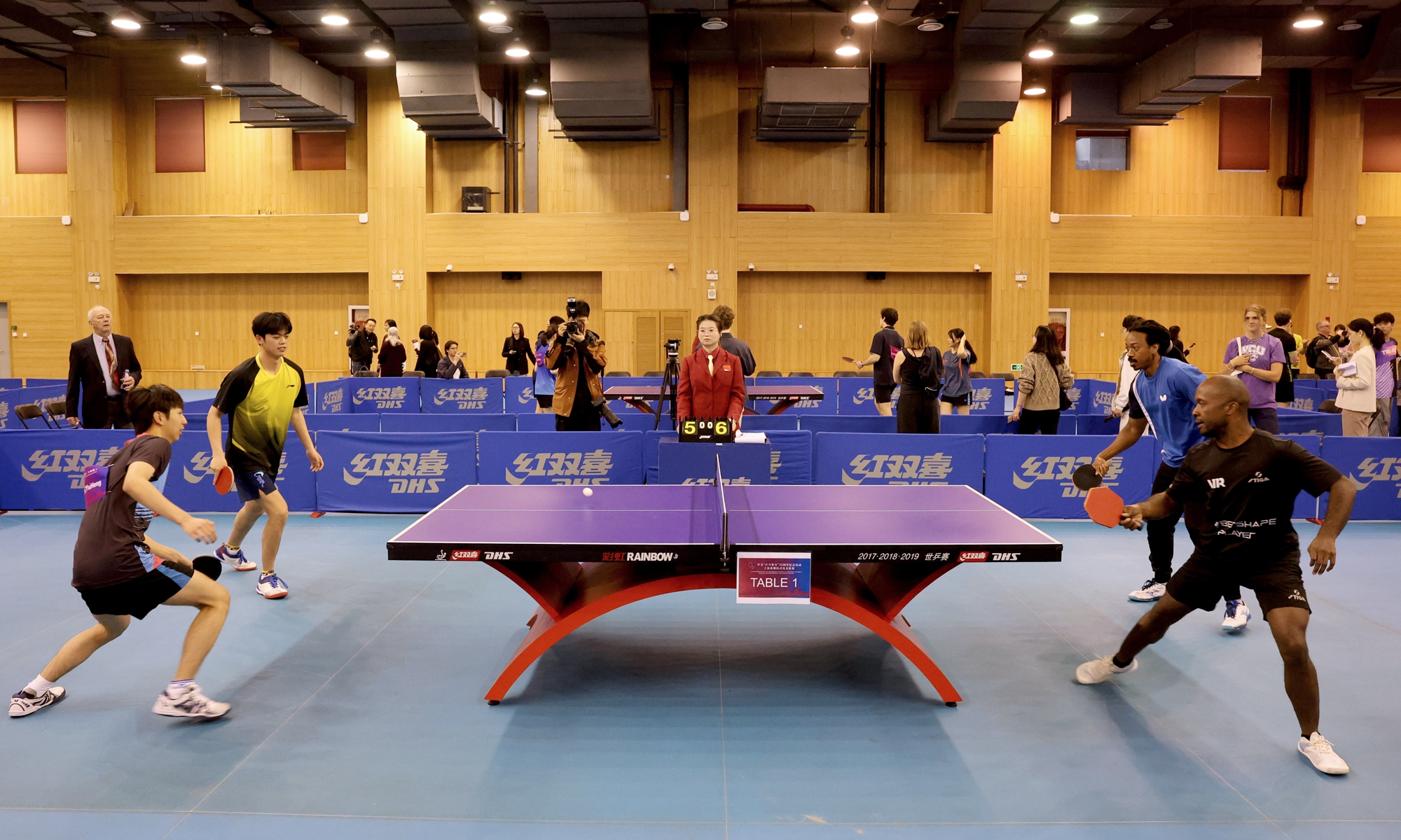 A welcome ceremony and friendly matches were held at Shanghai University of Sport on Monday, in commemoration of the 55th anniversary of the China-US Ping-Pong Diplomacy. The commemorative events were attended by former Chinese and US table tennis players who experienced firsthand the Ping-Pong Diplomacy in the early 1970s, young players and enthusiasts from both countries, and individuals promoting China-US people-to-people exchanges in various fields including sports, culture, and education.