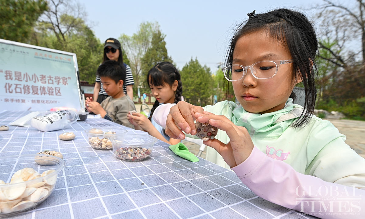 The events included expert lectures on ancient humans, a creative painting exhibition on cultural relic protection, fossil restoration experiences, a “young archaeologist” excavation practice, relic puzzles, and creative DIY activities, which attracted the participation of many visitors. An exhibition on the Cultural Relics Protection Law was also held at the site park, providing comprehensive information on the newly revised law and the site protection plan. (Photos: Chen Tao/GT)