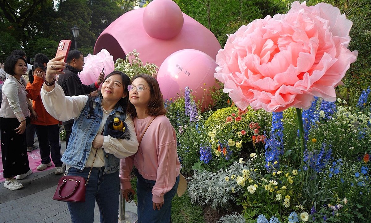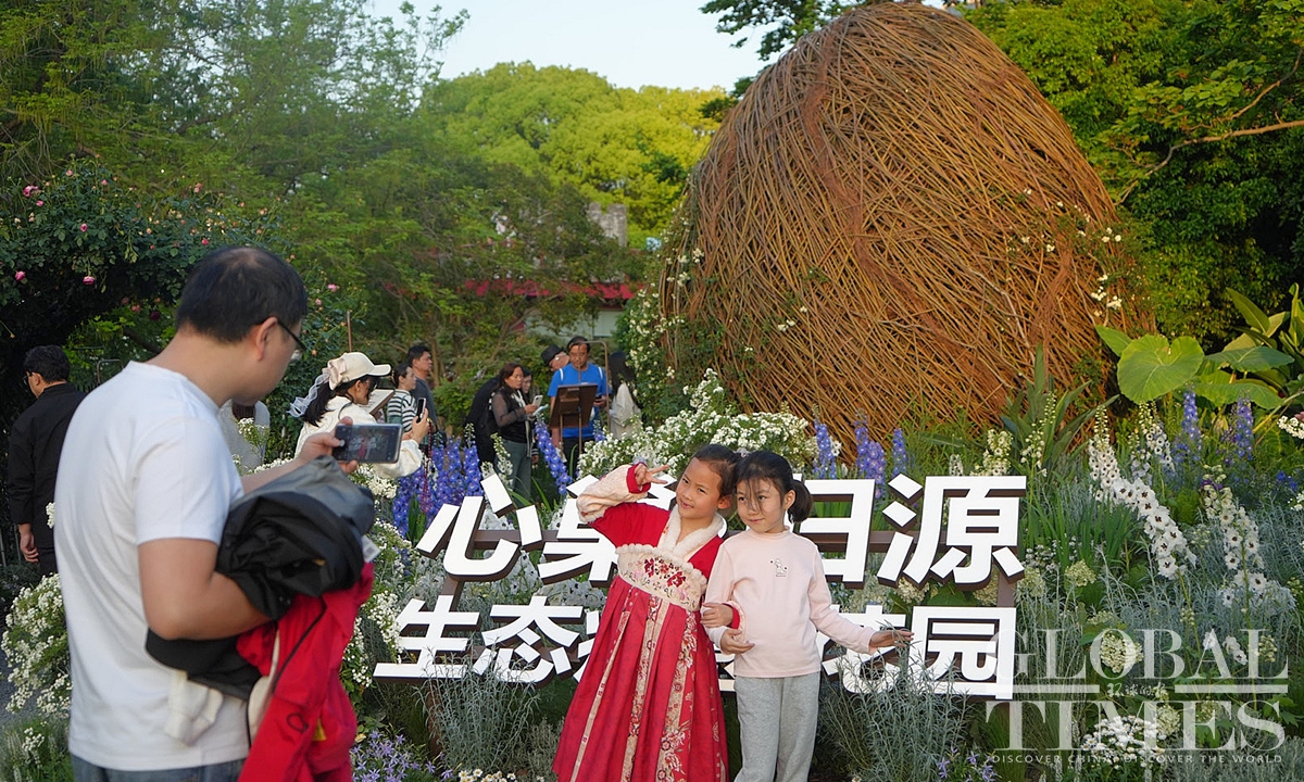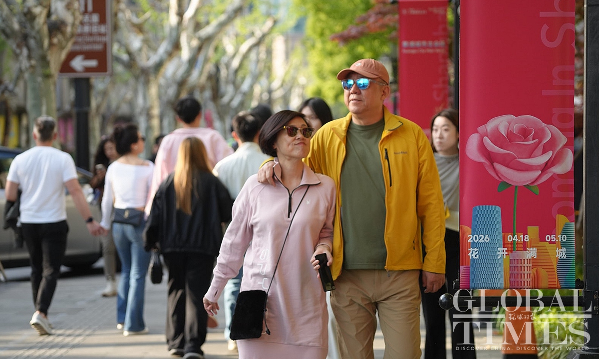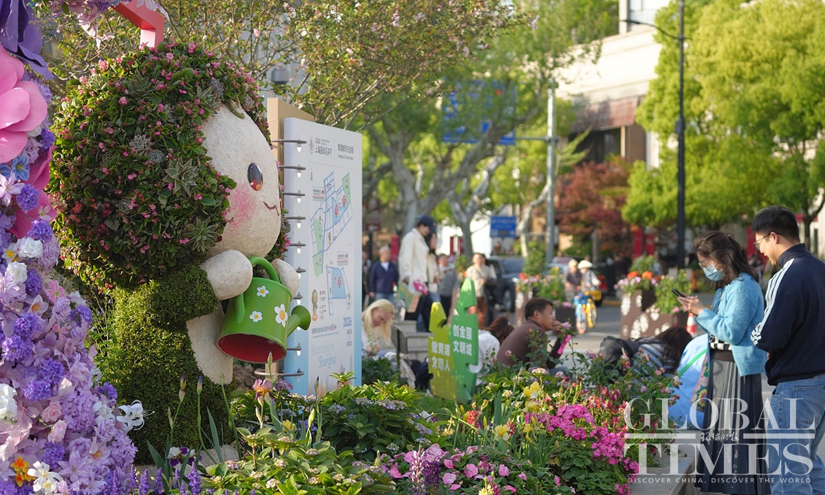 The 2026 Shanghai International Flower Show starts on Saturday and is scheduled to last until May 10, 2026. A total of 40 themed landscape installations and over 60 urban flower windows will be set up along a route stretching from Xintiandi to the Gucheng Park, passing through Nanjing Road, Huaihai Road, and Sinan Mansions, forming a perceptible floral path. (Photo: Lu Ting/GT)