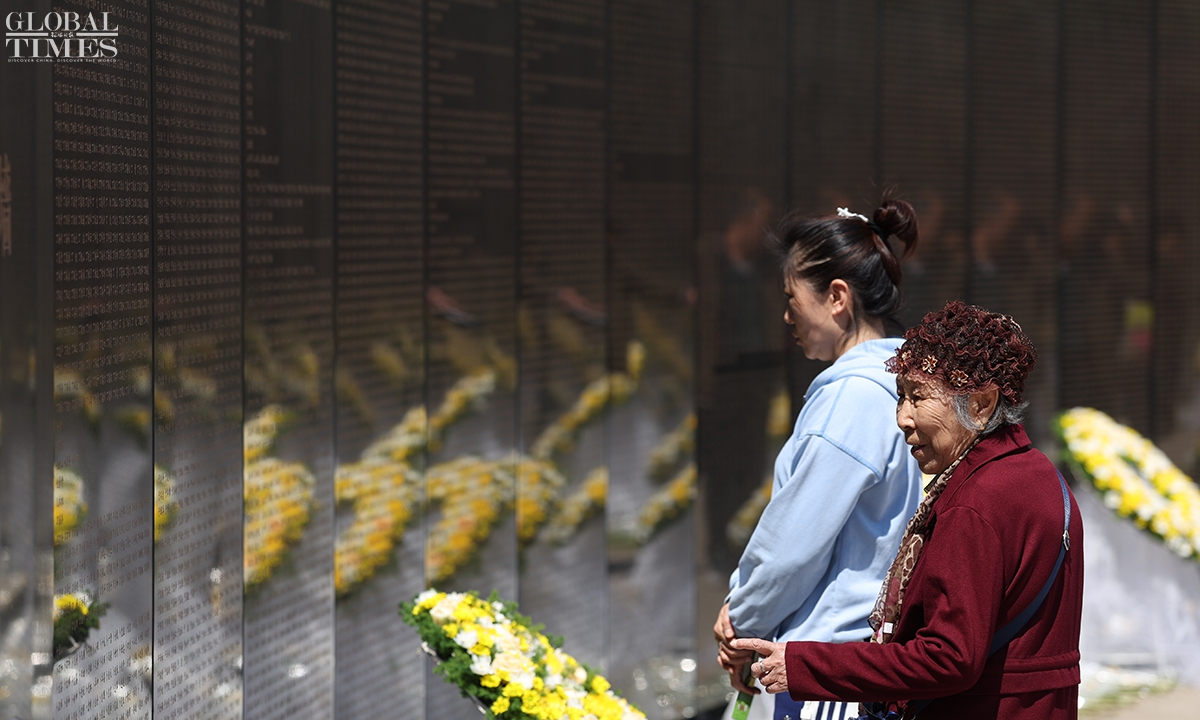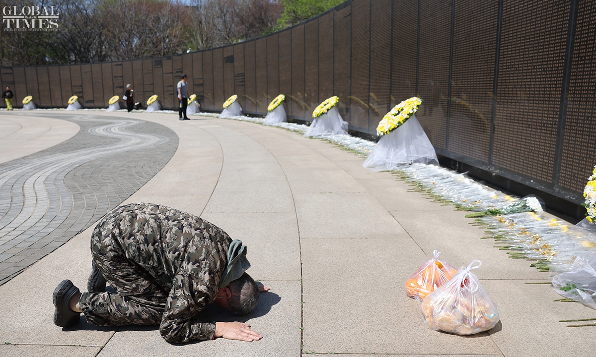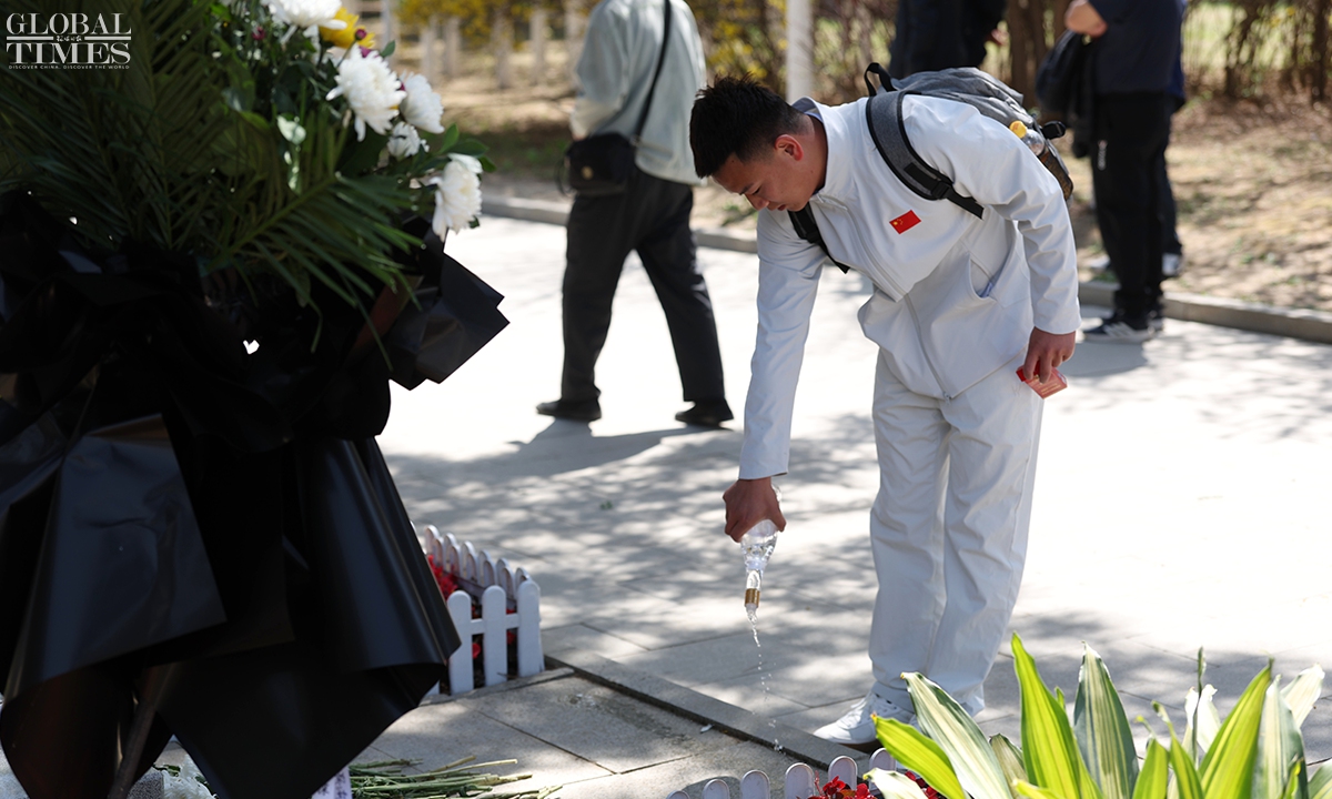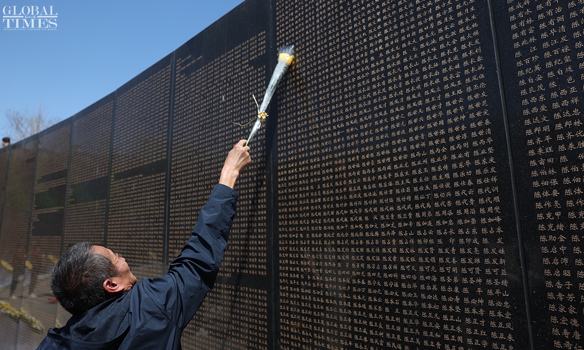 On April 23, 2026, following the burial ceremony for the remains of 12 Chinese People’s Volunteers (CPV) martyrs who lost their lives during the War to Resist US Aggression and Aid Korea (1950-53), crowds gathered at the martyrs' cemetery in Shenyang, Northeast China's Liaoning Province. People came voluntarily to mourn their loved ones and honor the fallen heroes who sacrificed their lives. On Wednesday, a Y-20B large transport aircraft carried the remains and personal effects of these 12 CPV soldiers and returned from South Korea to China. Photos: Cui Meng/GT