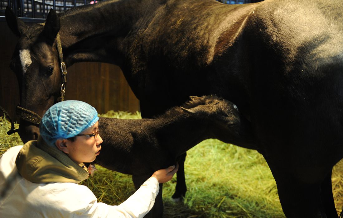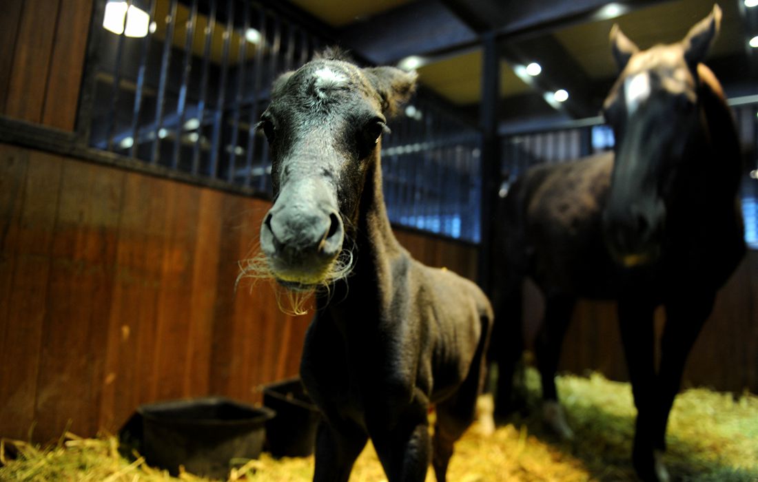 A ferghana horse foal is born at Xinjiang Ancient Ecological Garden in Urumqi, the capital of Northwest China’s Xinjiang Uyghur Autonomous Region on February 27, 2017. Photo: CFP figcaption >