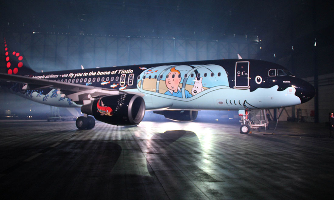 Tintin’s latest adventure: Brussels Airlines recently unveiled its Airbus A320 with a Tintin-themed mural. The Adventures of Tintin is a comic book series created by Belgian artist Georges Remi (1907–83). Photo: mil.chinaiiss.com