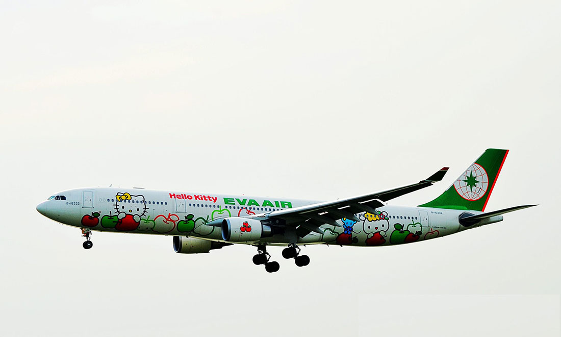 Pick of the fleet: Taiwanese carrier EVA Air continues its Hello Kitty series with this Airbus A330-300, which shows the character sharing apples with passengers. Photo: travel.sina.com figcaption >