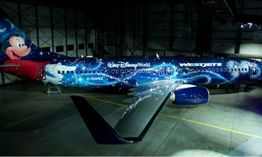 Magic in the air: Canadian Western Airlines unveiled their custom-painted Boeing 737-800 featuring a Fantasia-inspired Mickey Mouse. Photo: carnoc.com figcaption >