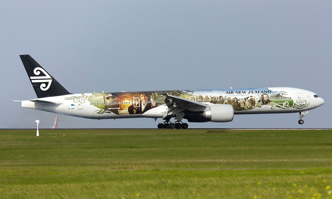 Rings around the world: Air New Zealand showed off its Boeing 777-300ER featuring a precious new livery inspired by The Hobbit film series. Photo: weibo.com figcaption >