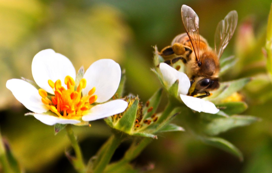 As spring approaches, a bee is photographed busily gathering nectar from garden flowers in Zhangye, Gansu Province on March 5. Photos: CFP