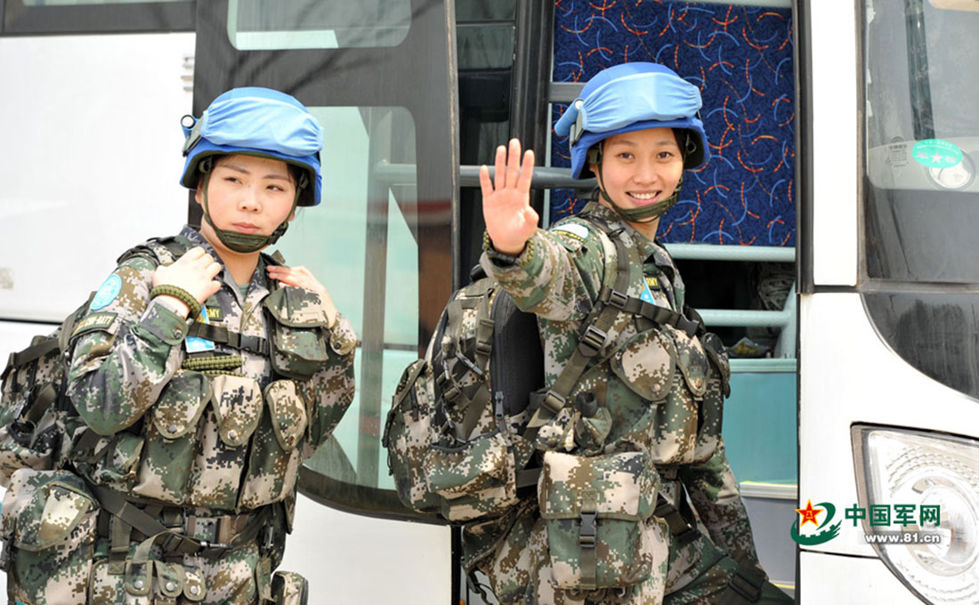 China’s first infantry squad of UN peacekeepers comprised entirely of women arrived in Juba, capital of South Sudan on April 8. The 13 women, who serve in the Jinan Military Area Command, were among 130 Chinese peacekeepers dispatched to South Sudan on April 7. They will join the 570 Chinese already in the area in carrying out UN peacekeeping missions. Photos from China’s Military Online document the all-female squad before their departure from Jinan, East China’s Shandong Province on April 7. Photo: 81.cn