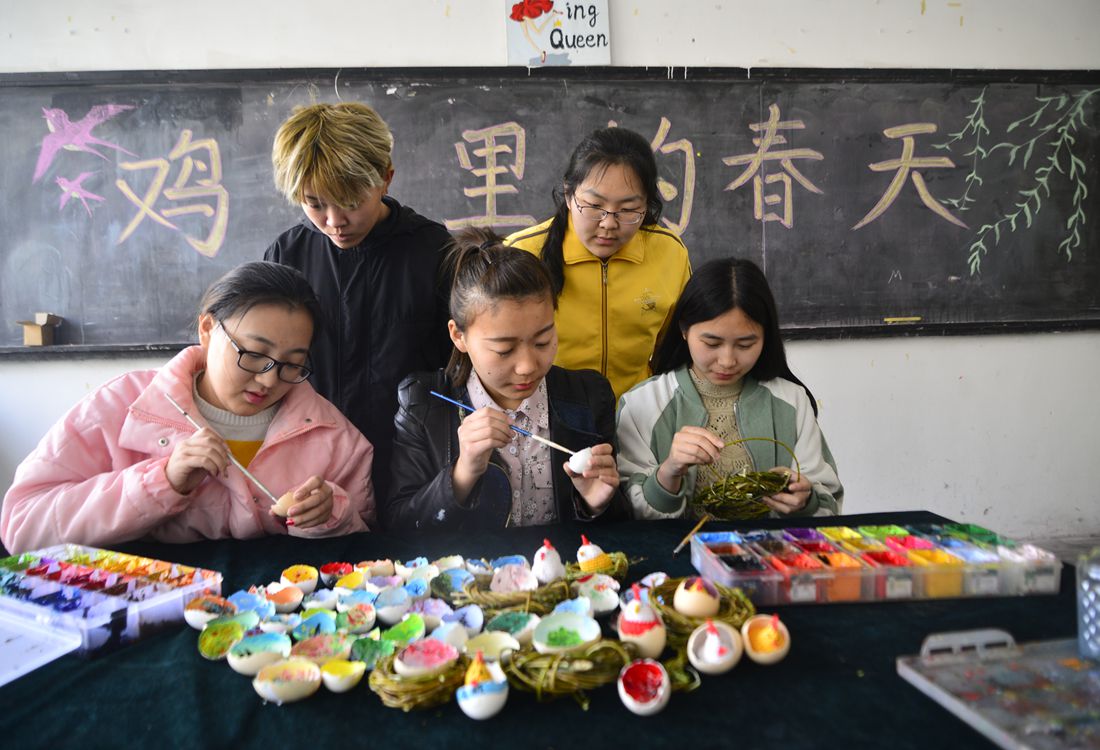 College students at Liaocheng University paint the insides of eggshells in Shandong Province on March 12, 2017. Photo: CFP figcaption >