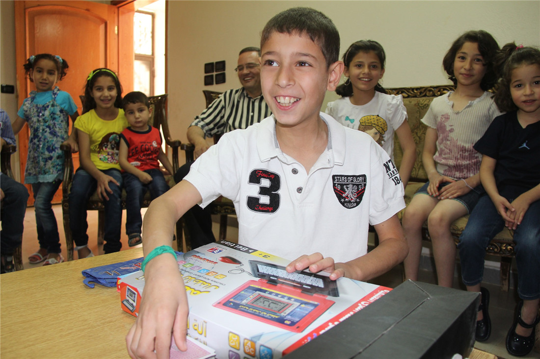 A boy displays his toys at an SOS Children's Village in a suburb of Damascus, Syria. Photo: Huan Xiang/People's Daily figcaption >