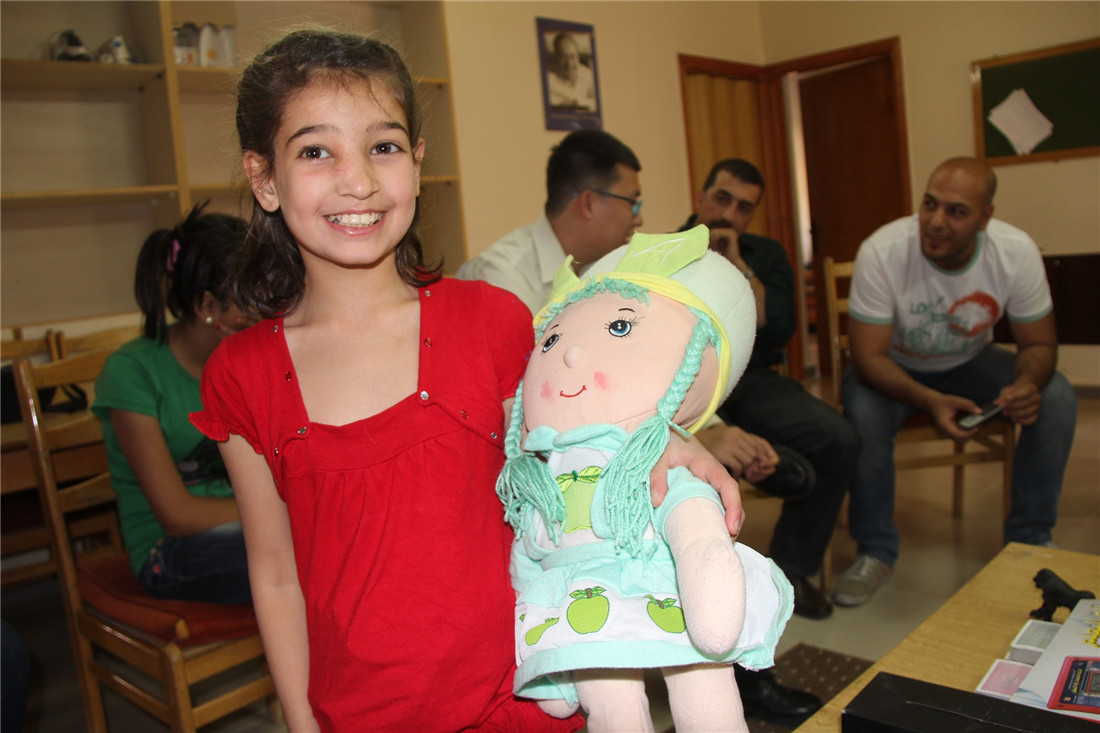A girl holds a doll at an SOS Children's Village in a suburb of Damascus, Syria. The village is home to more than 200 Syrian children. Photo: Huan Xiang/People's Daily figcaption >